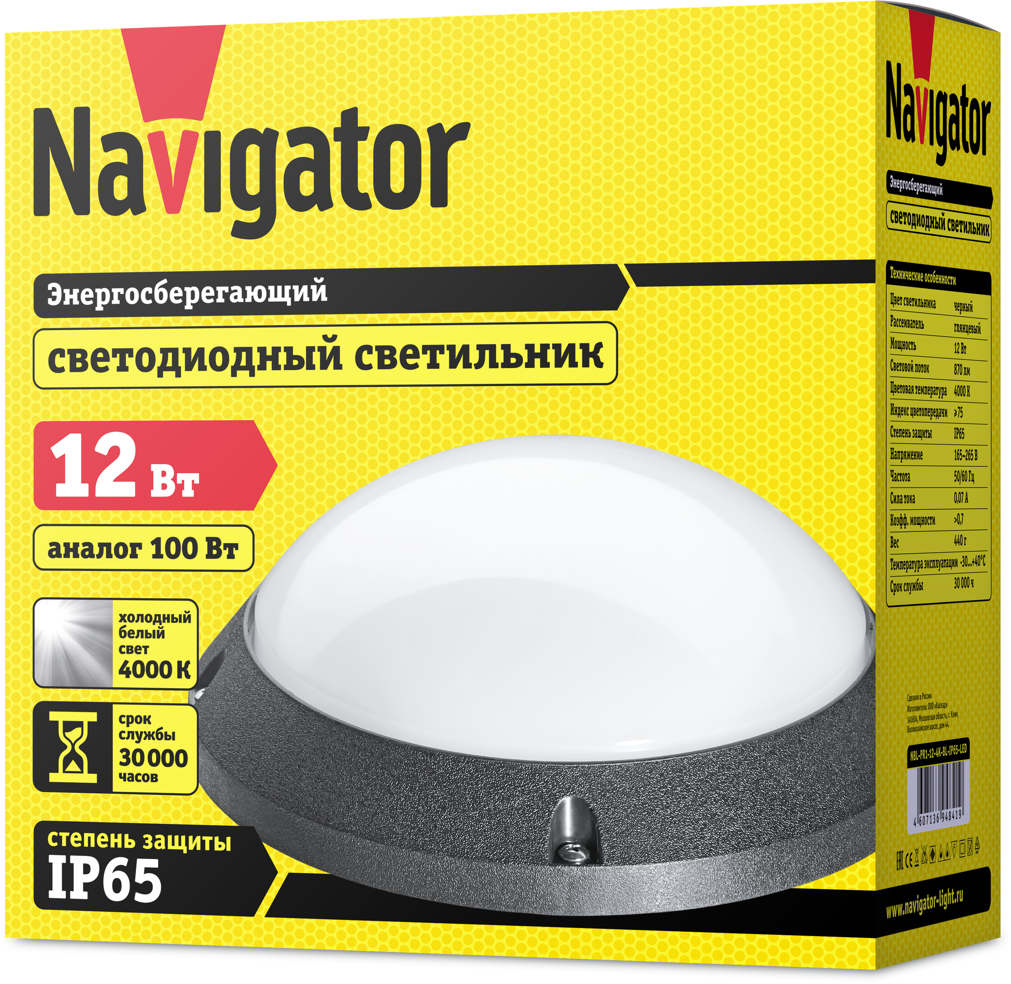 Светильник светодиодный Navigator 94 841 NBL-PR1, 13 Вт, дневного света 4000К, IP65, черный