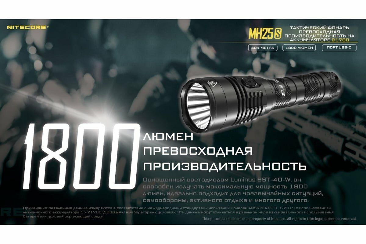 Спортивный фонарь Nitecore MH25S Luminus SST-40-W интересное:
