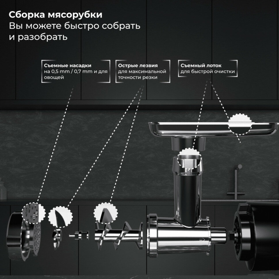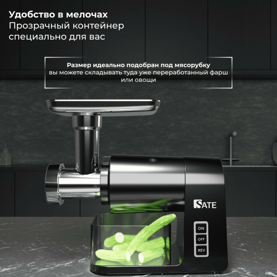 Мясорубка-овощерезка электрическая SATE RT-125 с насадками, черный интересное:
