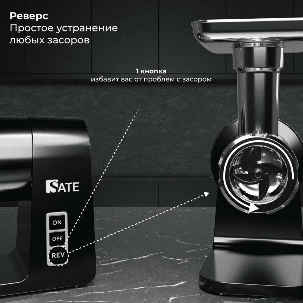 Мясорубка электрическая SATE RT-125 с насадками, функция реверс, овощерезка , черный