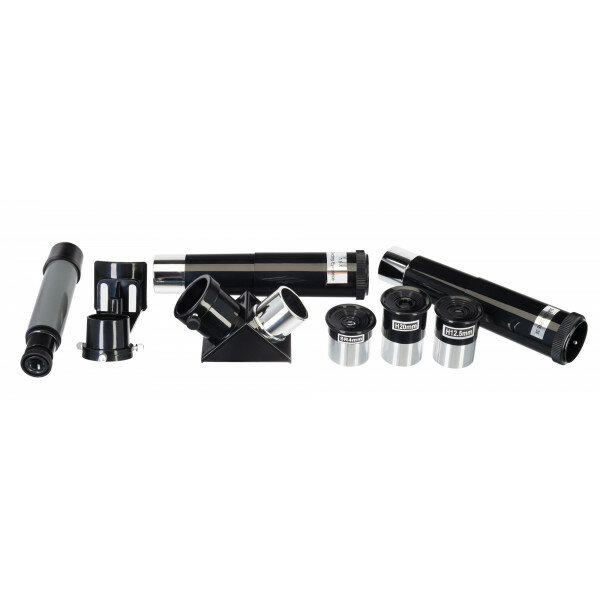| Комплектация | Оптическая труба телескопа, окуляр SR4 мм, окуляр H12,5 мм, окуляр H20 мм, оборачивающий окуляр 1,5х, линза Барлоу 3х, диагональное зеркало 90°, оптический искатель 5х24, азимутальная монтировка, алюминиевая тренога с полочкой для аксессуаров, инструкция по эксплуатации и гарантийный талон. |