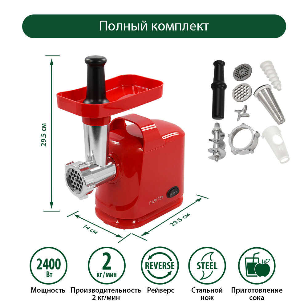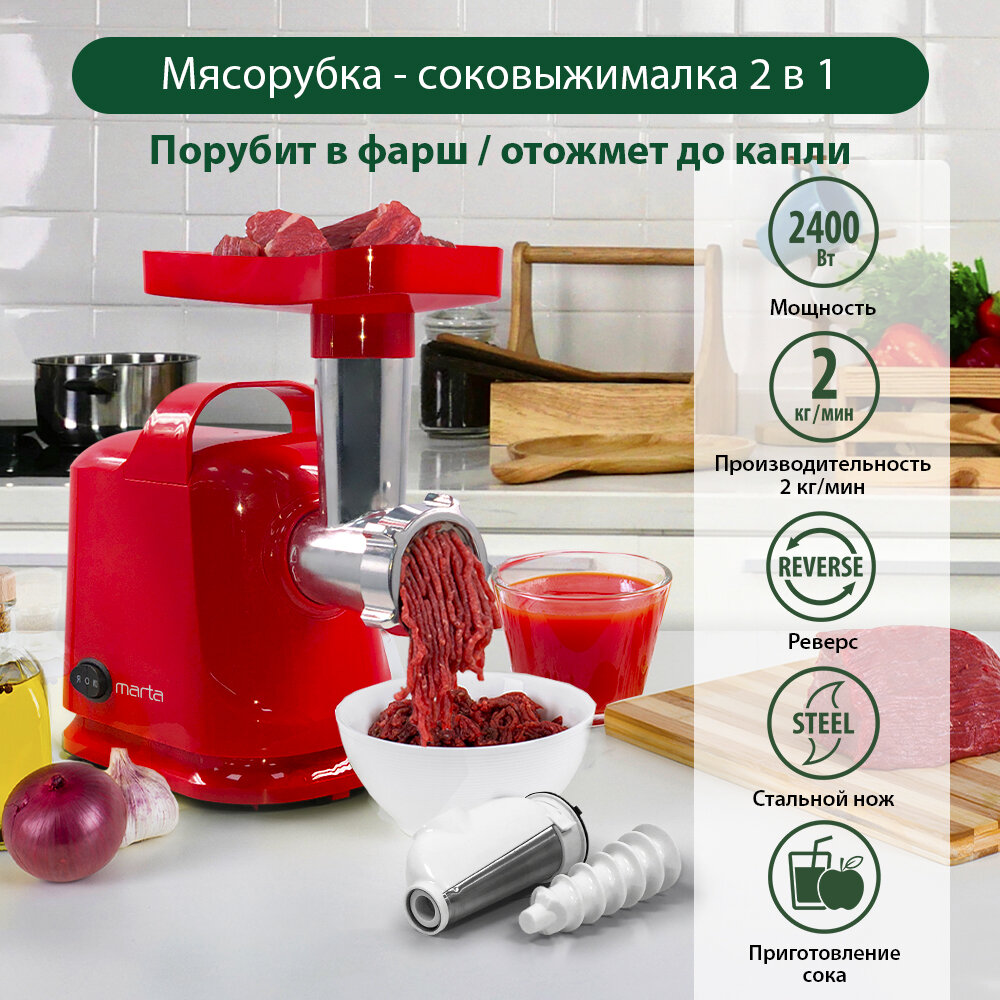Мясорубка MARTA MT-MG2016A красный коралл интересное: