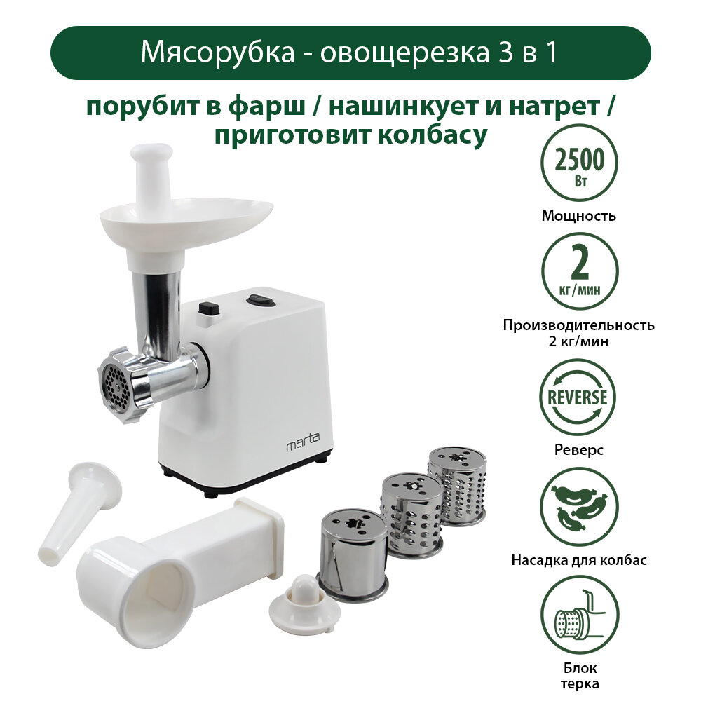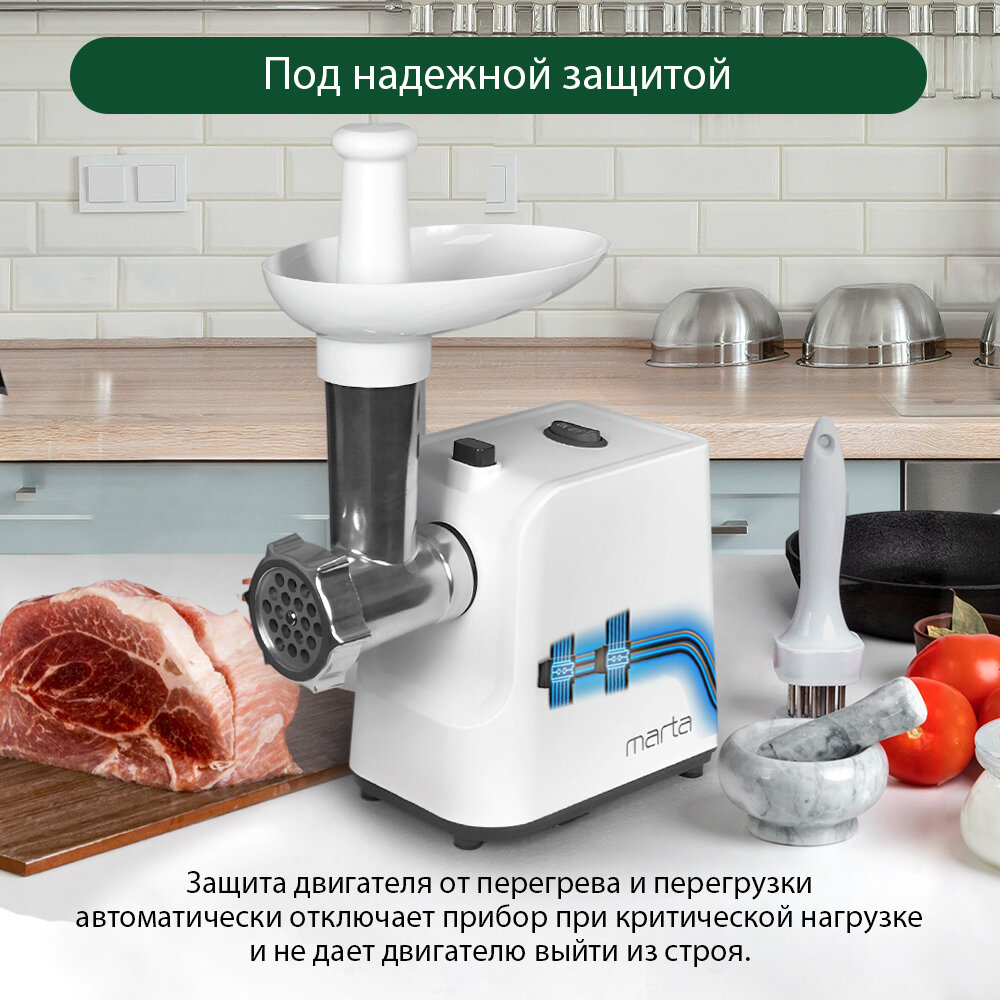 Мясорубка MARTA MT-MG2027A белый интересное: