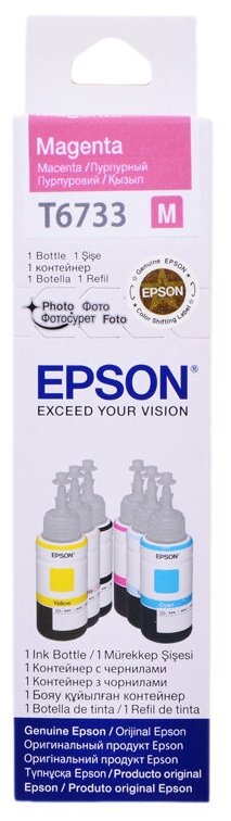 Чернила Epson C13T67334A,блистер для Epson L1800, Epson L800, Epson L805, Epson L810, Epson L850, пурпурный, 1800 стр., 70 мл