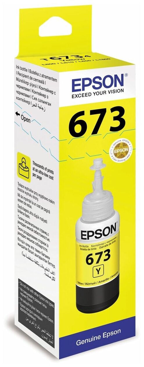 Чернила Epson C13T673498, для Epson L800, Epson L805, Epson L810, Epson L850, Epson L1800, желтый, 70 мл