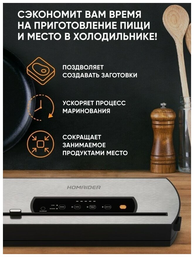 Homaider Вакуумный упаковщик Вакууматор для продуктов, 4 режима вакуумирования и пайки, рулон интересное: