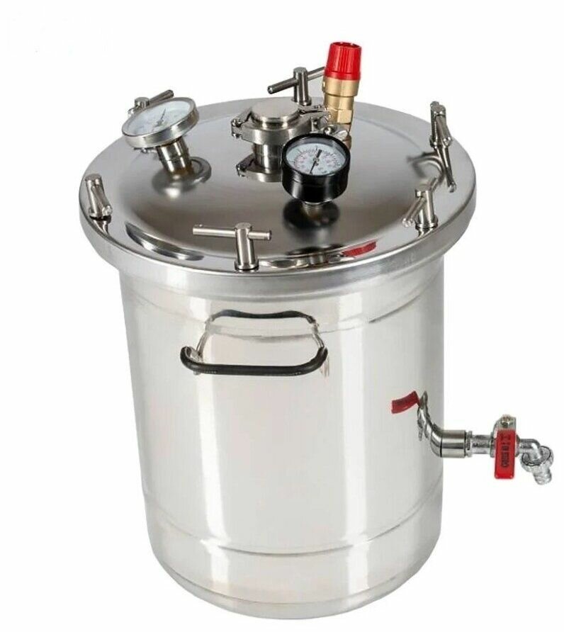 В итоге оторвалась гайка. огромное спасибо магазину. все устранил бесплатно. Самое большое разочарование это предельное давление в 1.5 бара. Если посмотреть в интернете, то все рецепты на 2.0 бара. Самое интересное в комплекте нет таблицы с продуктами и температурами. Поэтому очень сложно что-то определить самостоятельно. спасибо, что положили небольшую книгу рецептов в которой максимальная температура - 113 градусов. кто не знает, давление влияет на время стерилизации. плюс не все убивается температурой 113 градусов. Я считаю, что это огромный минус производителю. скрыть информацию от покупателя. Из советов начинающим берите с давлением 2.0 бара и с ТЭНом. не каждая плита выдержит вес автоклава загруженного под завязку. Воду заливать нужно по максимуму, спасибо, что это не упомянули в инструкции, даже если будете автоклавировать 1 банку. |