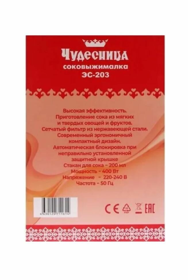 Купить Соковыжималка Чудесница ЭС-203 400Вт
