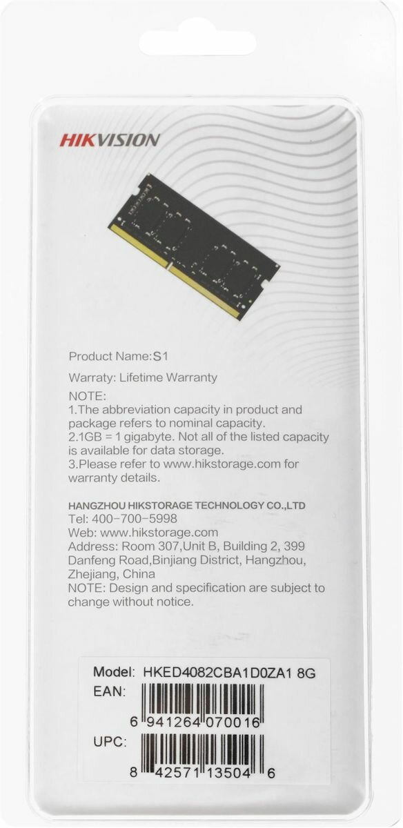 Оперативная память SO-DIMM Hikvision 8GB DDR4-2666 (HKED4082CBA1D0ZA1/8G)