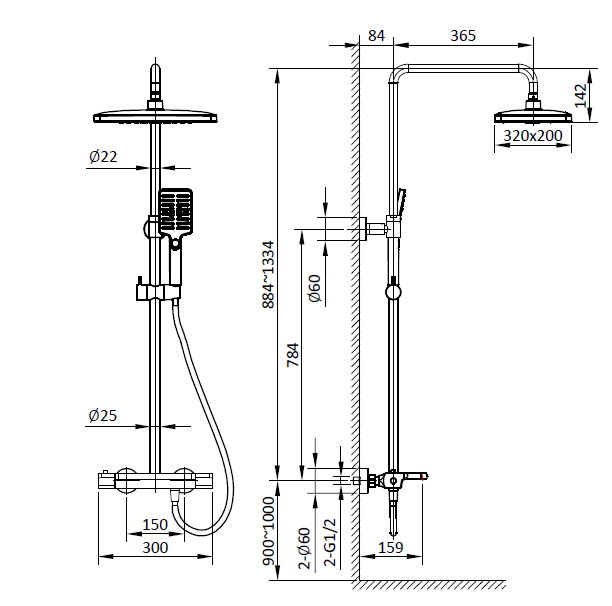 Душевая система 320x200 мм AltroBagno Lamberto 030418 NeOp