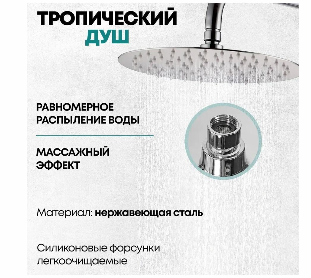 | Плюсы: | Отличный душ! Стильный дизайн! Пользуемся уже полгода, все хорошо, работает как часы. Качество - цена радует. Надежный, не хлипкий. |