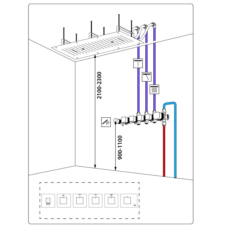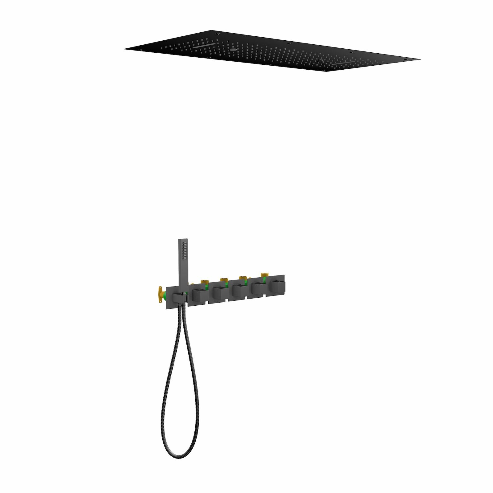 | Дополнительная информация | Встраиваемый блок управления душевой системой - 1 шт. Декоративные гильзы - 5 шт. Декоративные накладки - 6 шт. Ручка управления термостатом - 1 шт. Ручки управления режимами подачи воды - 4 шт. Соединительная трубка - 1 шт. Держатель ручной с подключением шланга для душа (латунный) - 1 шт. Ручная лейка (латунная) - 1 шт. Шланг душа 1,5 м - 1 шт. Корпус потолочного душа - 1 шт. Декоративная душевая панель 1000*500 мм (латунная) - 1 шт. Крепежные винты с гайками (комплект) - 6 шт. Крепежные винты душевой панели (комплект) - 8 шт. Подвесные кронштейны (комплект) - 3 шт. Подводка - 1 шт. Инструкция - 1 шт. |