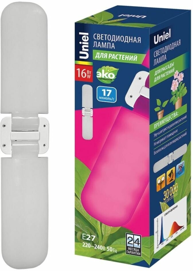 Лампа светодиодная для растений Uniel UL-00007406, E27, 16 Вт