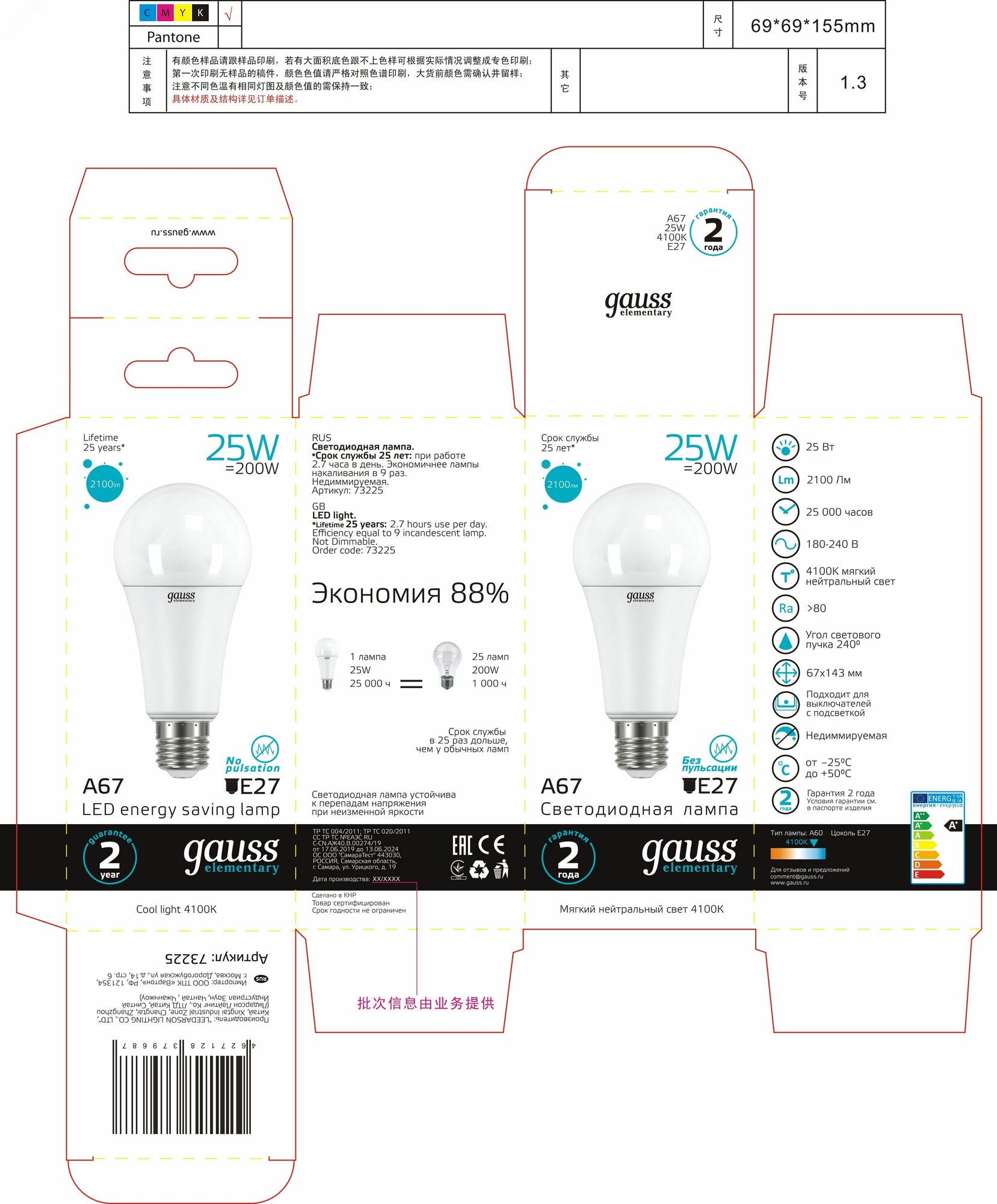 Ниже Вы можете прочитать отзывы на Лампа светодиодная gauss 73225, E27, A67, 25 Вт, 4100 К, ознакомится с подробными характеристиками, посмотреть интересные обзоры и фотографии на Лампа светодиодная gauss 73225, E27, A67, 25 Вт, 4100 К.