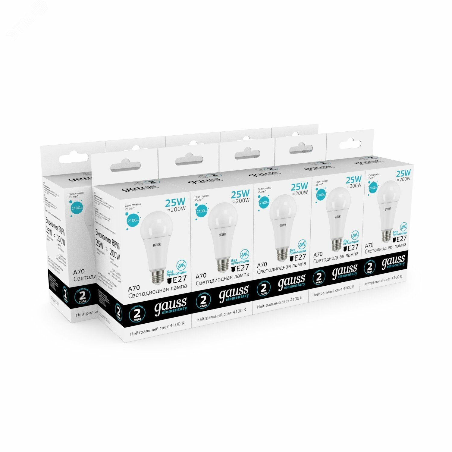 Светодиодная лампа GAUSS Elementary А70 25W 2100lm 4100K E27 LED 1/10/50