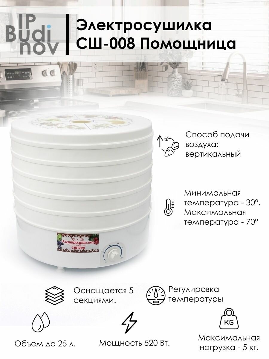 Сушка Помощница СШ-008 520Вт 5 решеток 25л интересное: