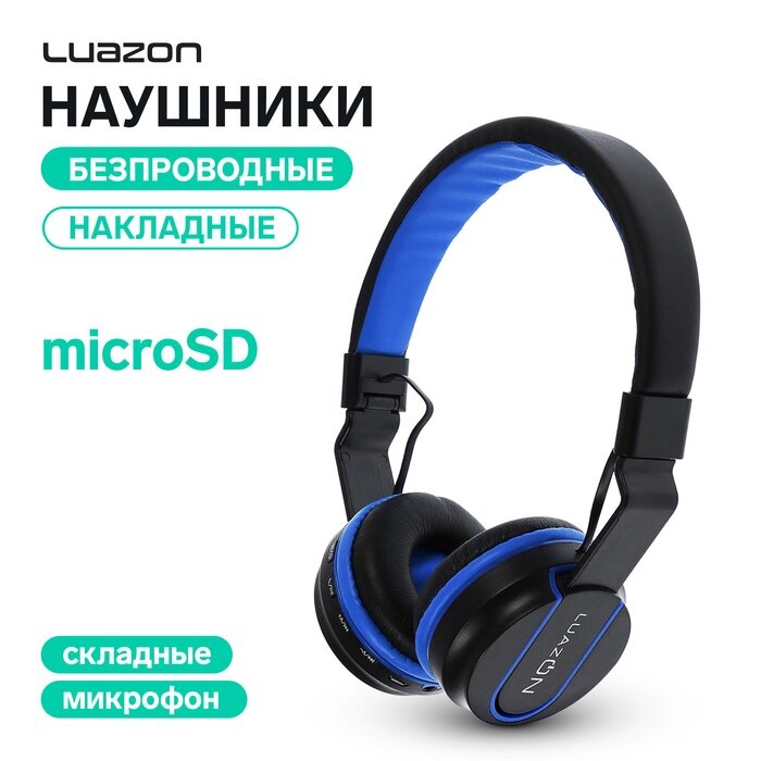 Купить Наушники беспроводные LuazON HQ-3, складные, микрофон, microSD, черно-синие 2534158
