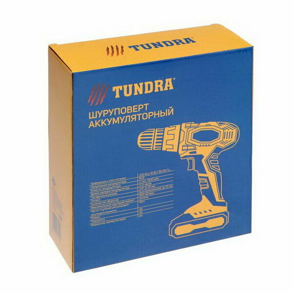 Шуруповерт TUNDRA, патрон БЗ до 10 мм, подсветка, Li-ion 1300 mAh 12V, 550 об/мин, 18 Н м