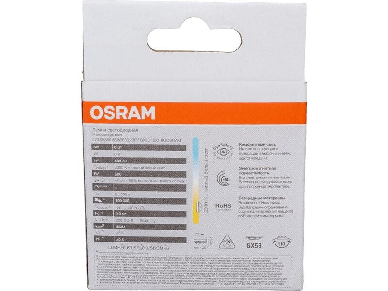 Купить Лампа светодиодная OSRAM LED Value LVGX5350 6SW/830 230В GX53 10х1 RU 4058075581975