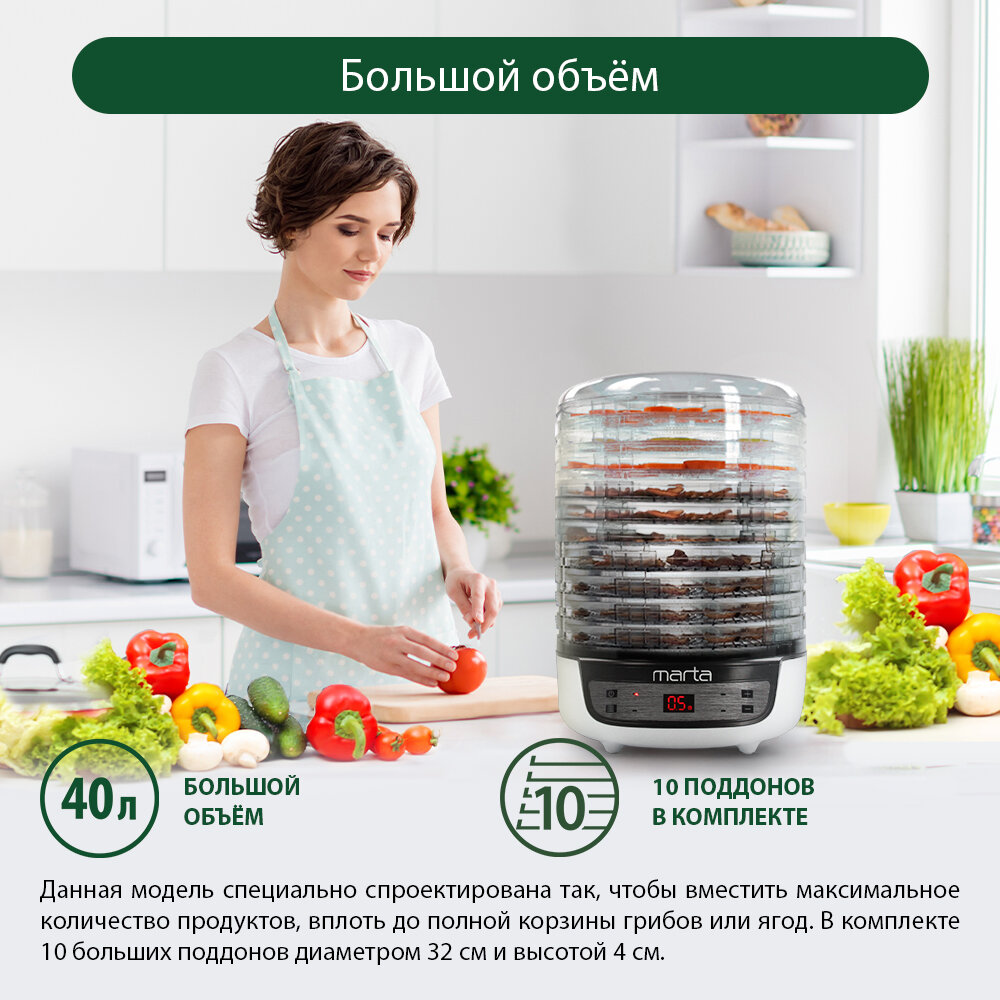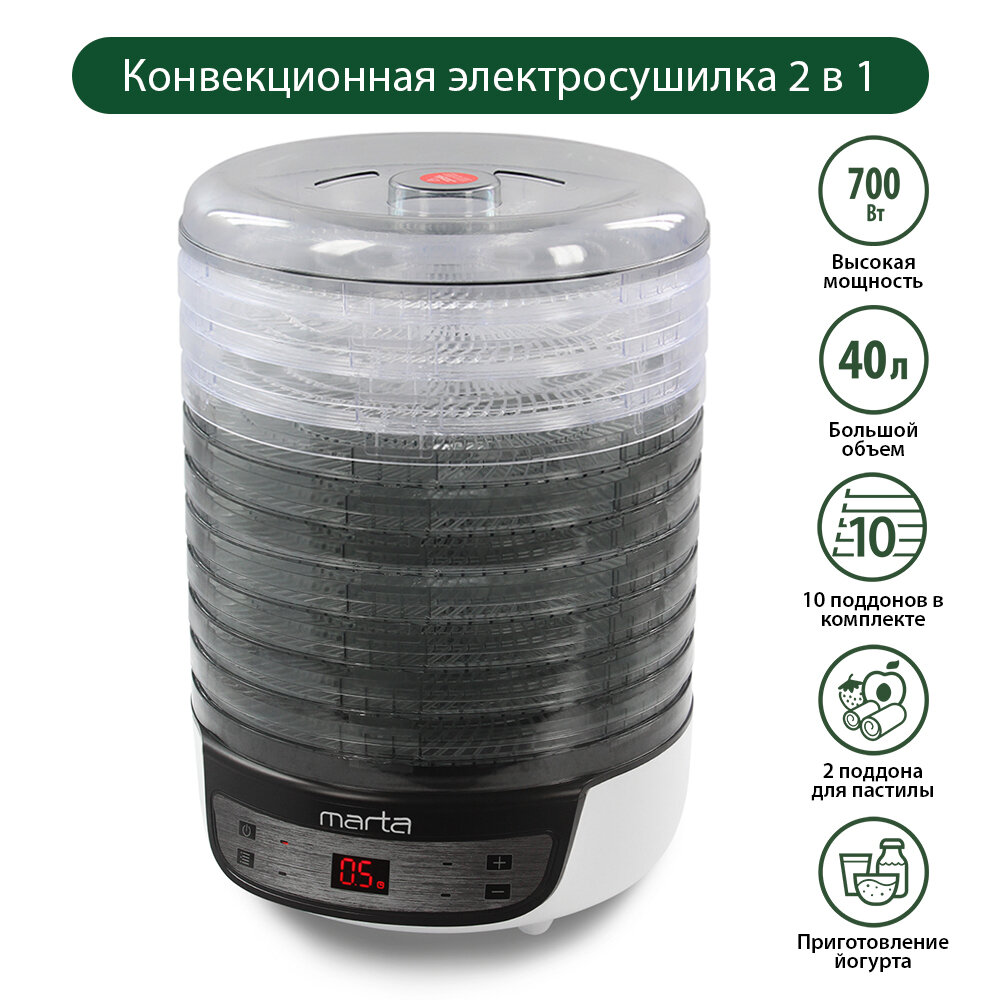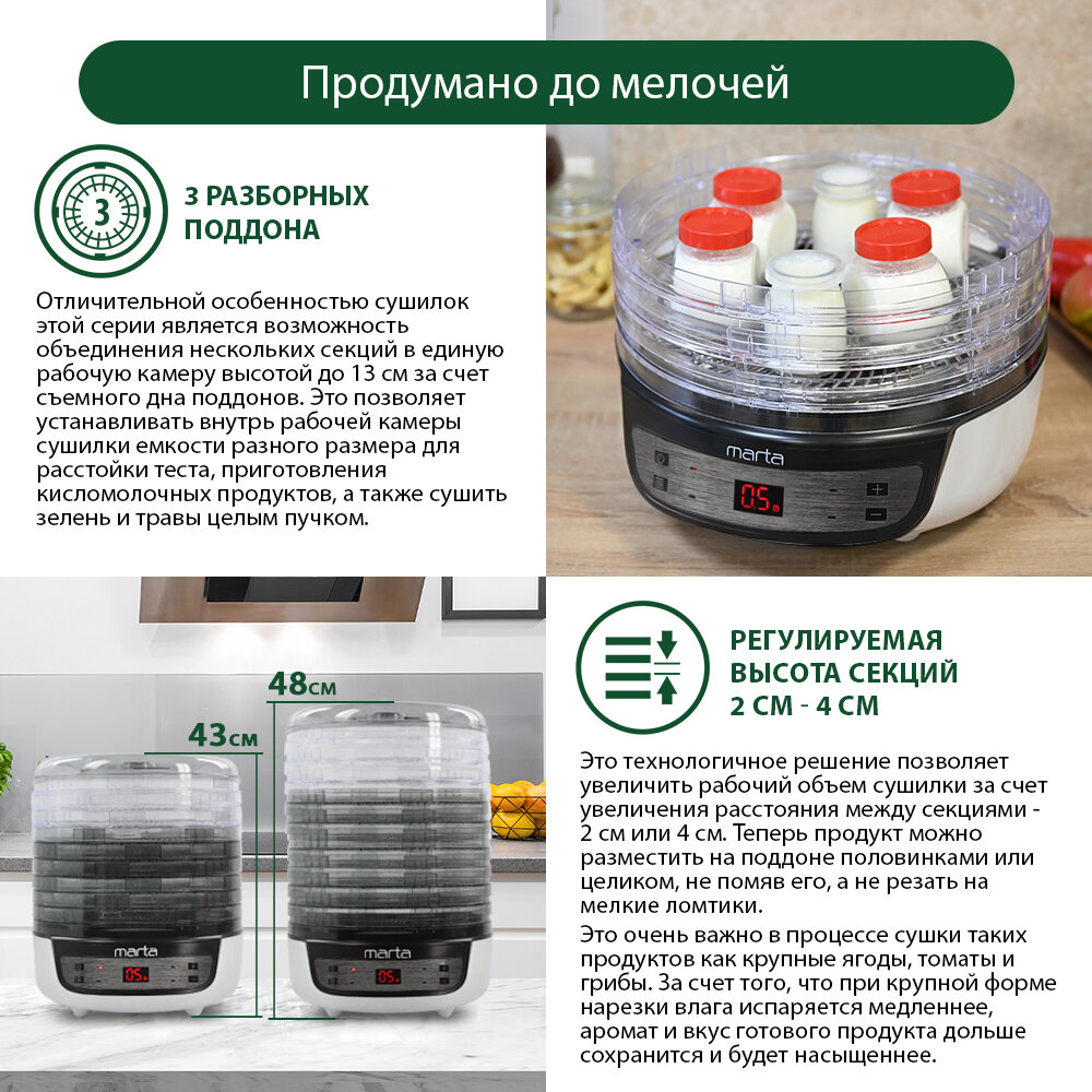 Сушилка MARTA MFD-8210PS 12 поддонов 10 (3 разб)+2(пастила) темный обсидиан интересное: