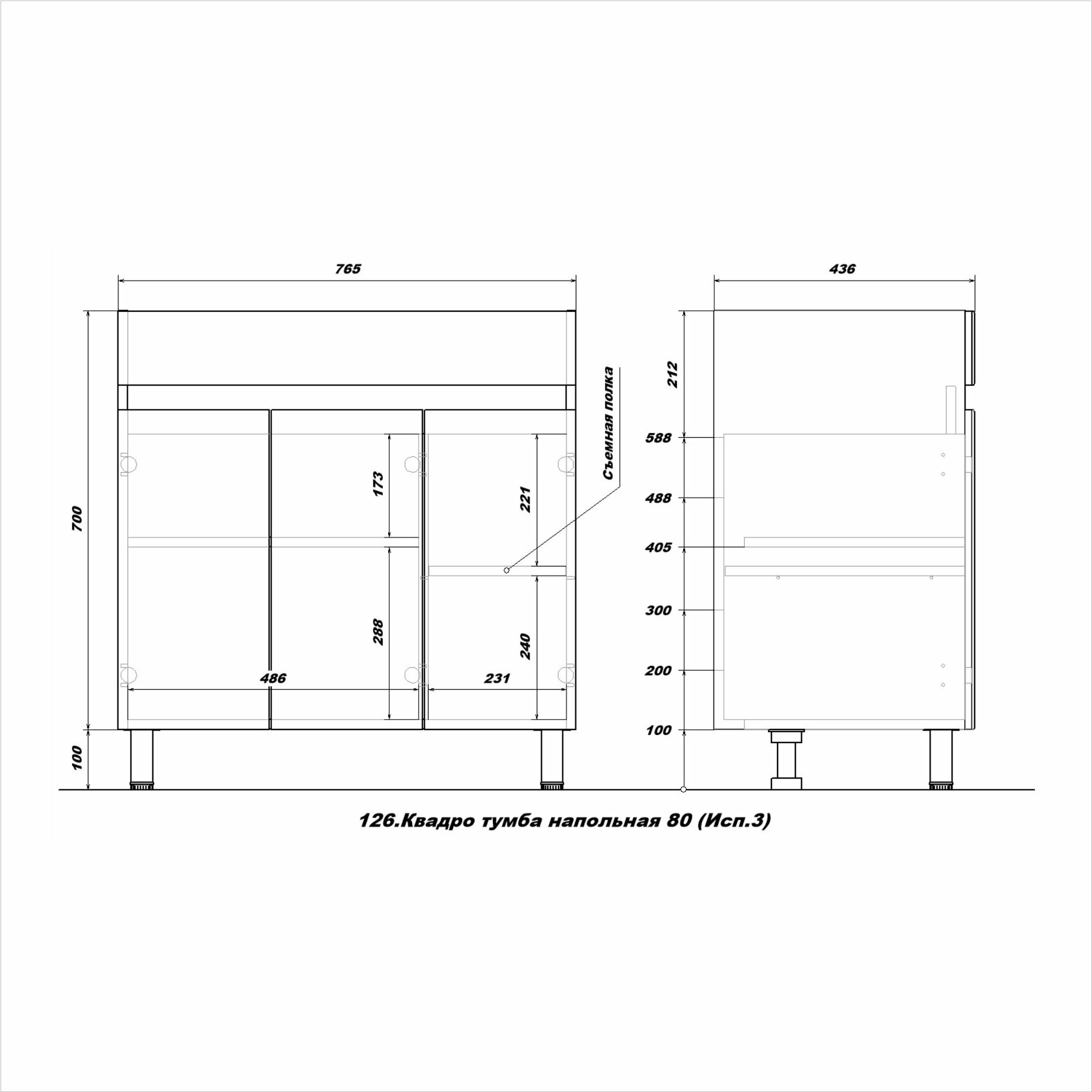 Тумба для ванной комнаты квадро 1-65