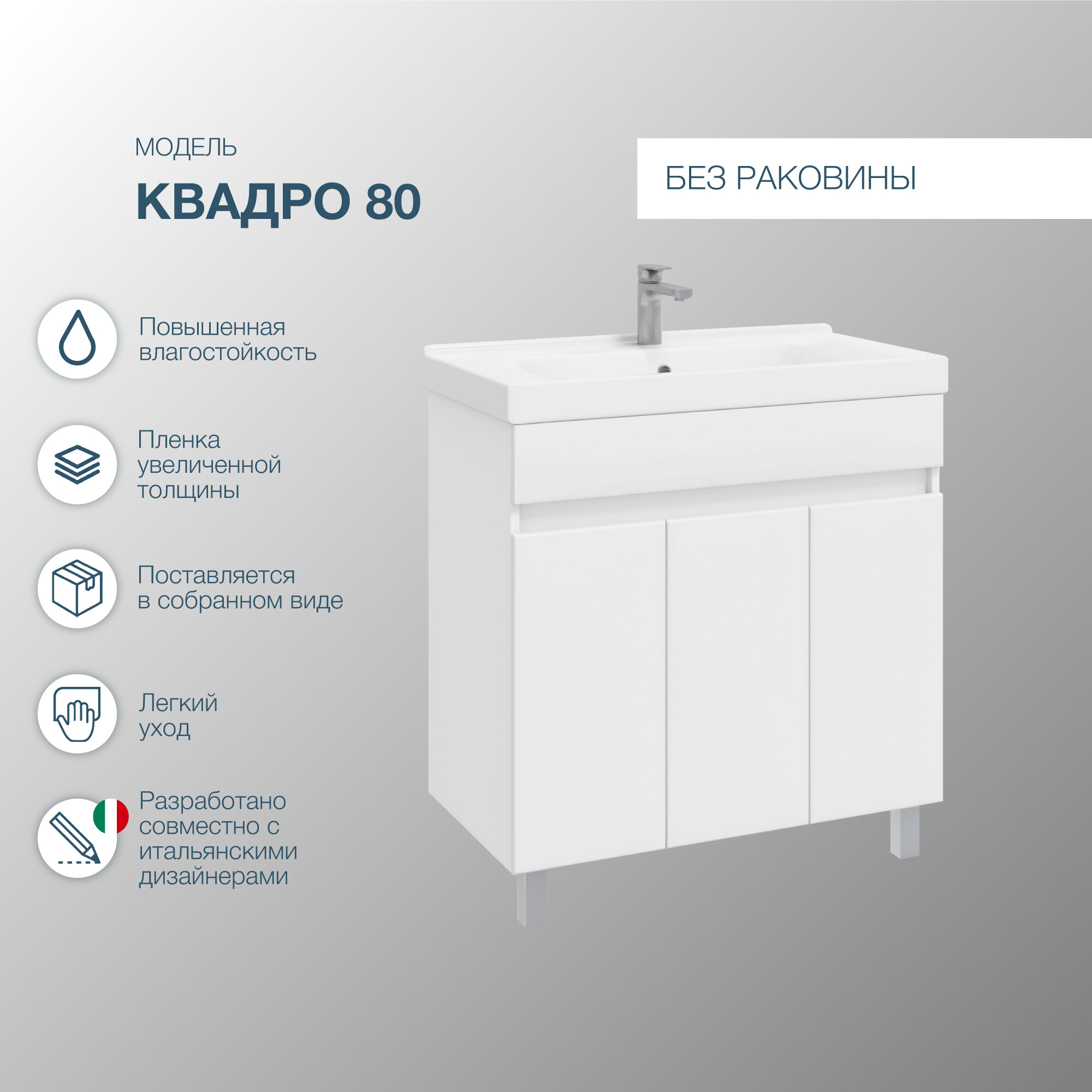 Тумба напольная SanStar Квадро 80 Без раковины для ванной комнаты, белая интересное: