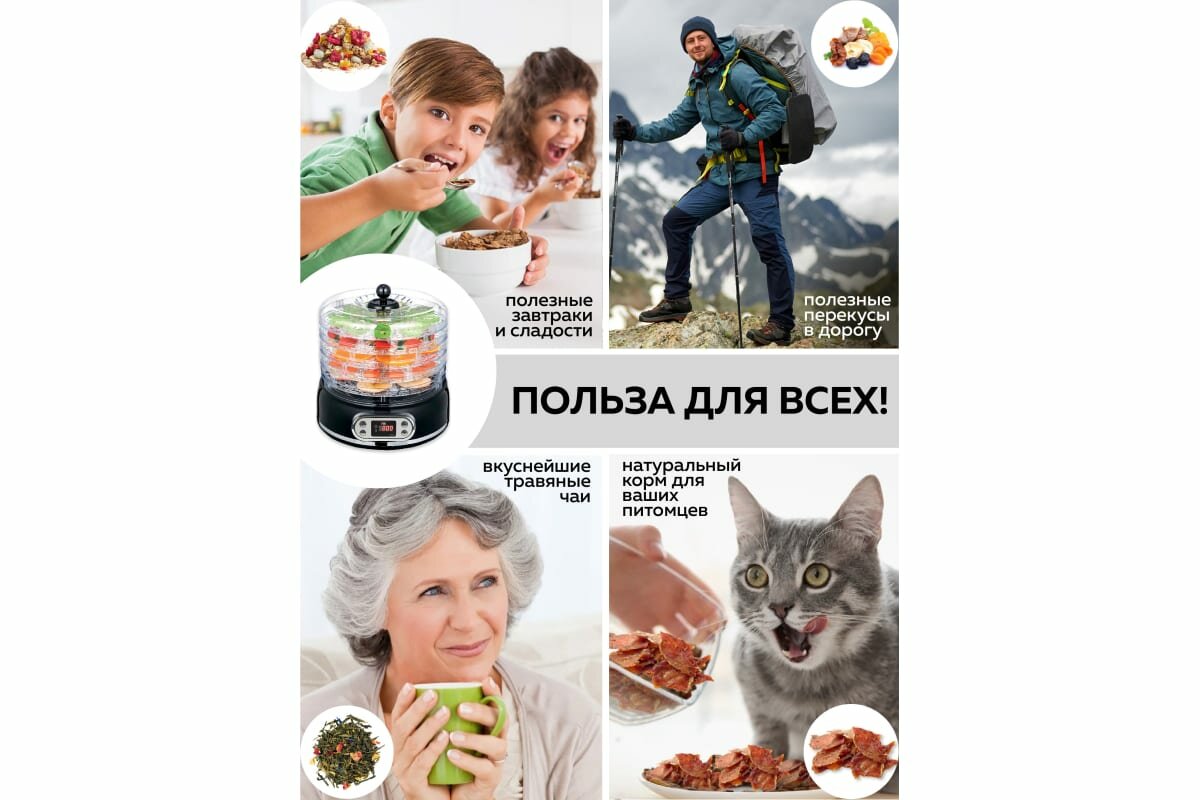 Сушилка для овощей и фруктов GFgril GFD-002, черный, 6 поддонов интересное: