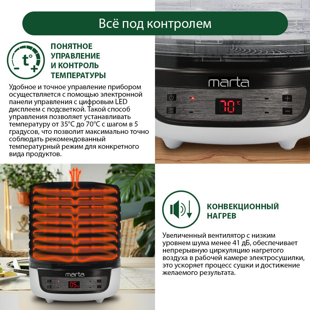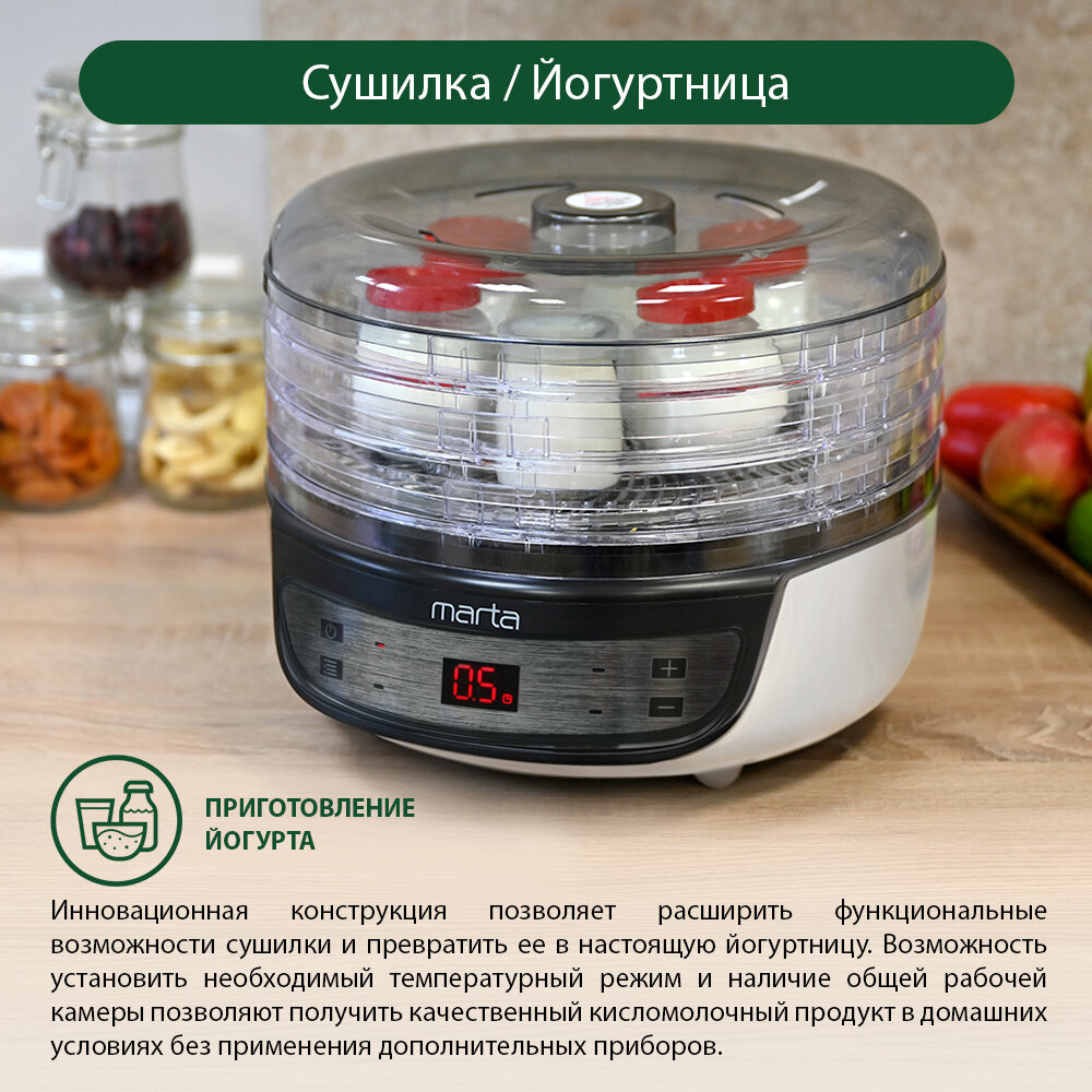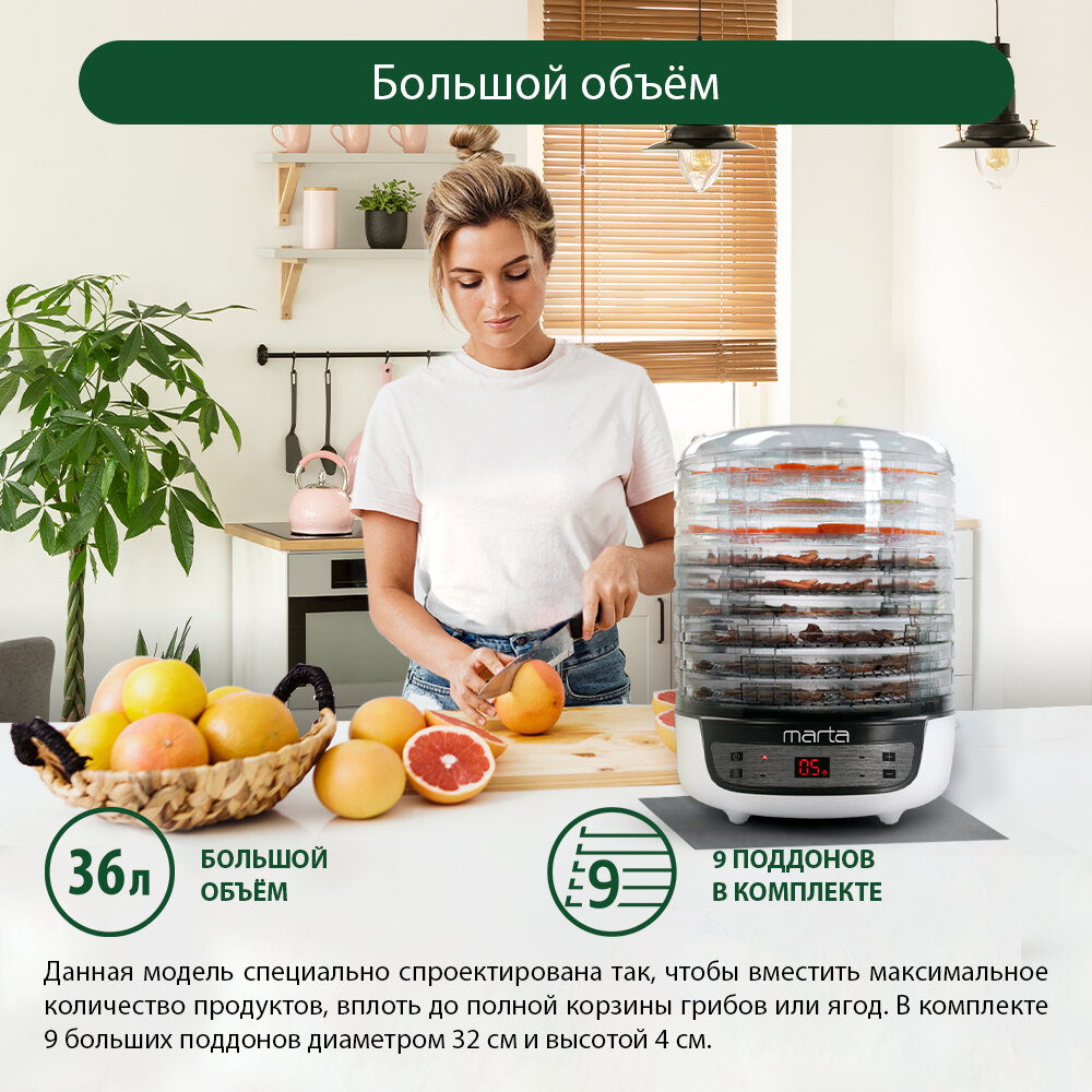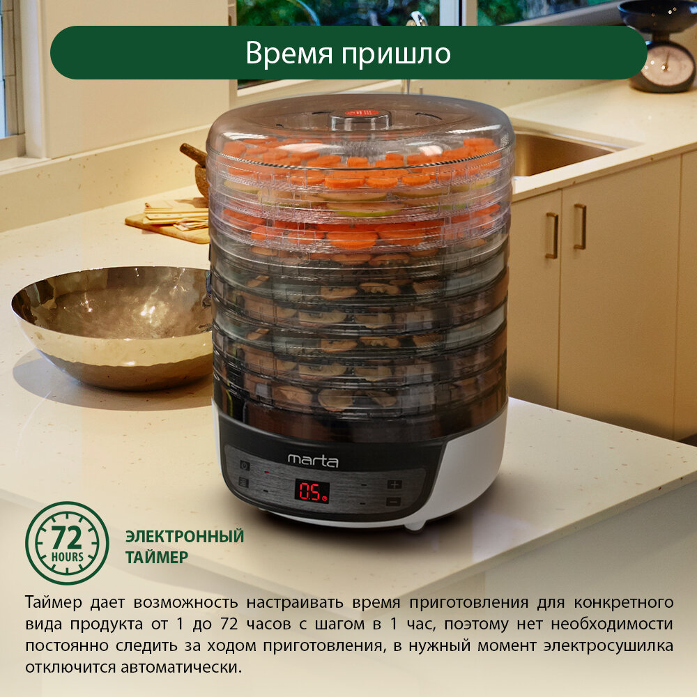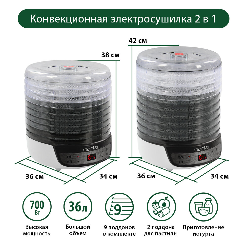 Сушилка MARTA MFD-8209PS 11 поддонов 9 (3 разб)+2(пастила) темный обсидиан интересное: