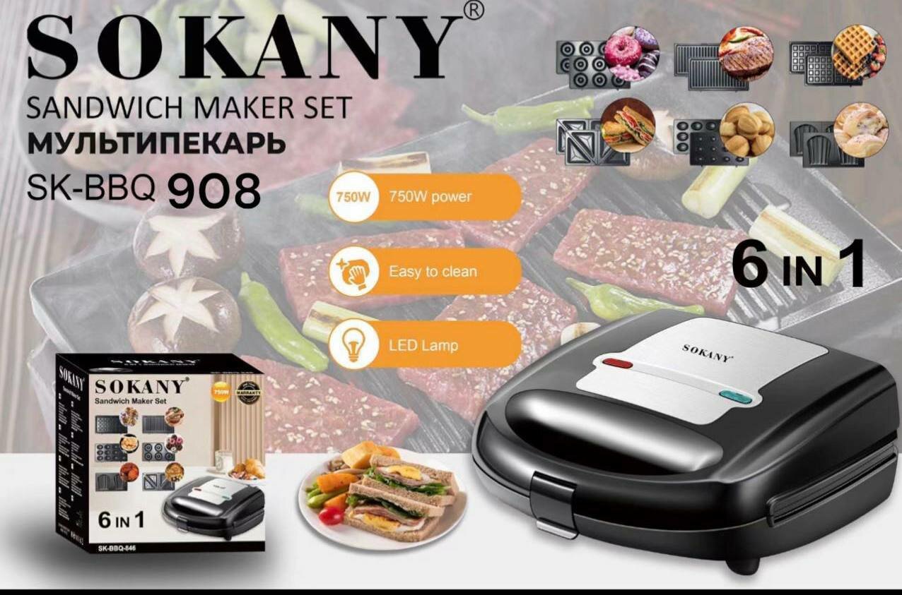 Купить Мультипекарь 6 в 1 Sokany /Вафельница / Сендвичница / Электрогриль