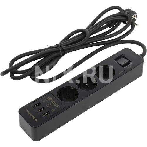Сетевой фильтр с USB зарядкой HARPER UCH-410 QC3.0 / 3 розетки / 3 USB-порта / черный