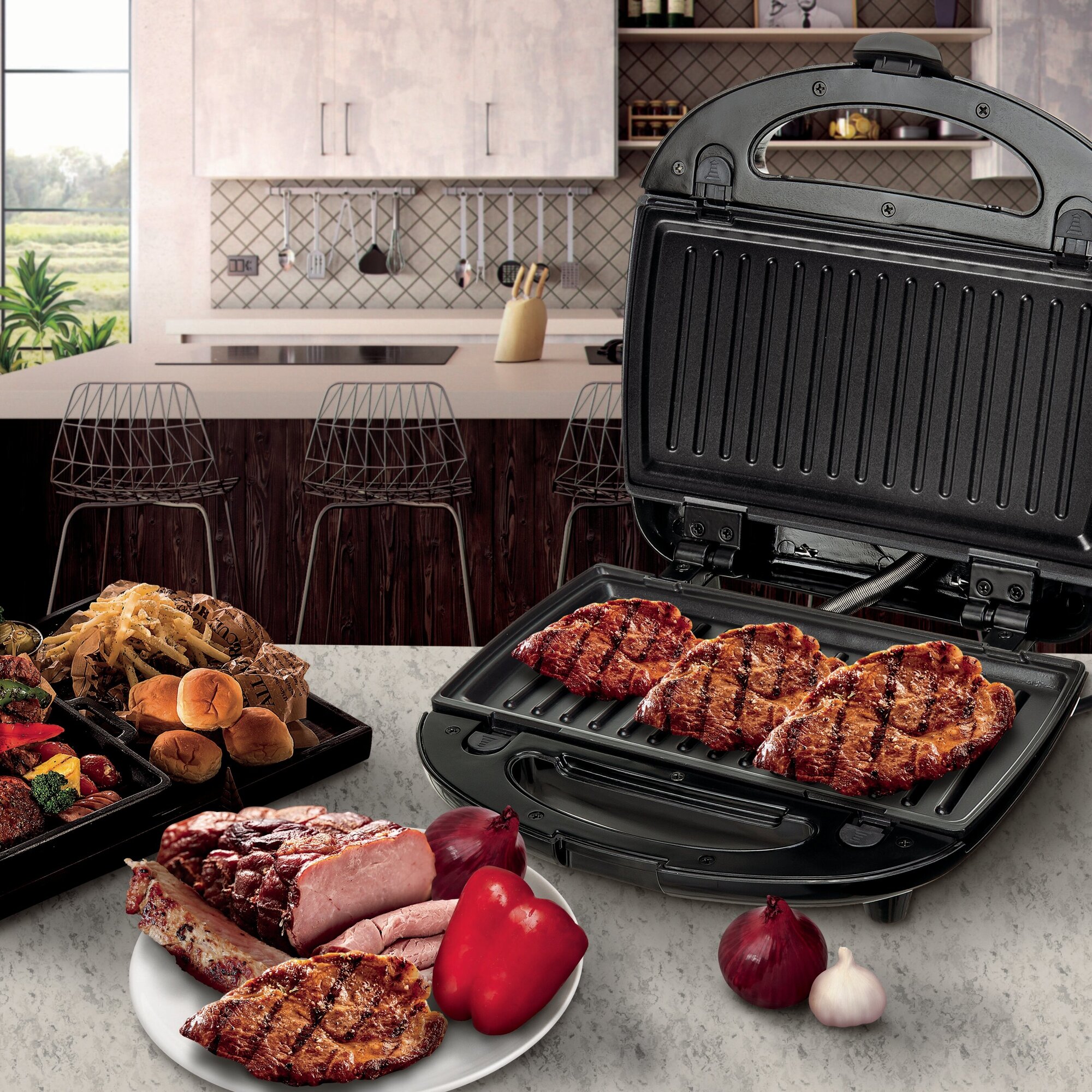 Мультипекарь электрический со съемными панелями 3в1 Camry CR3024 1000Вт/сэндвичница/гриль/вафельница/антипр-е покр-е/3 панели/серебр/черный интересное: