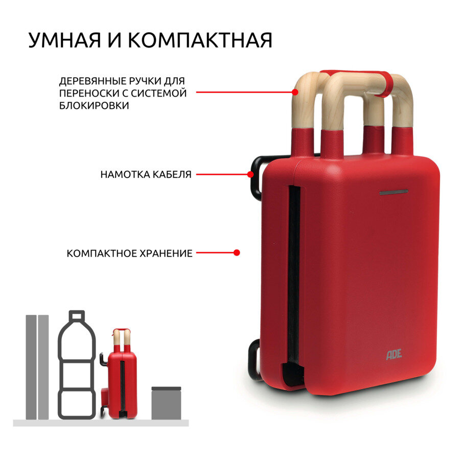 Вафельница и сэндвичница 2 в 1 ADE 600Вт, красная, KG2138-2, п/к