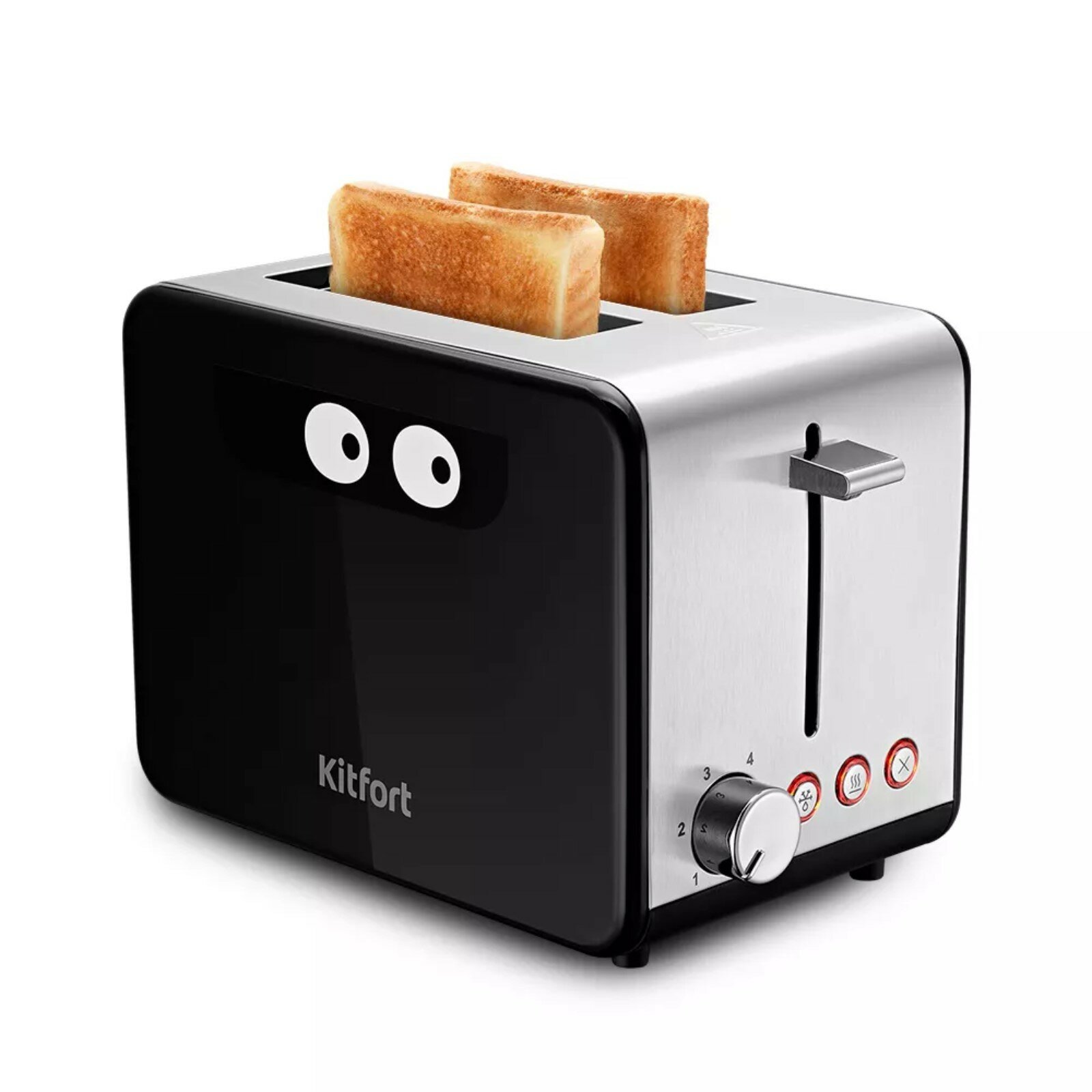Тостер Kitfort KT-2058, 870 Вт, 6 режимов прожарки, 2 тоста, чёрно-серебристый
