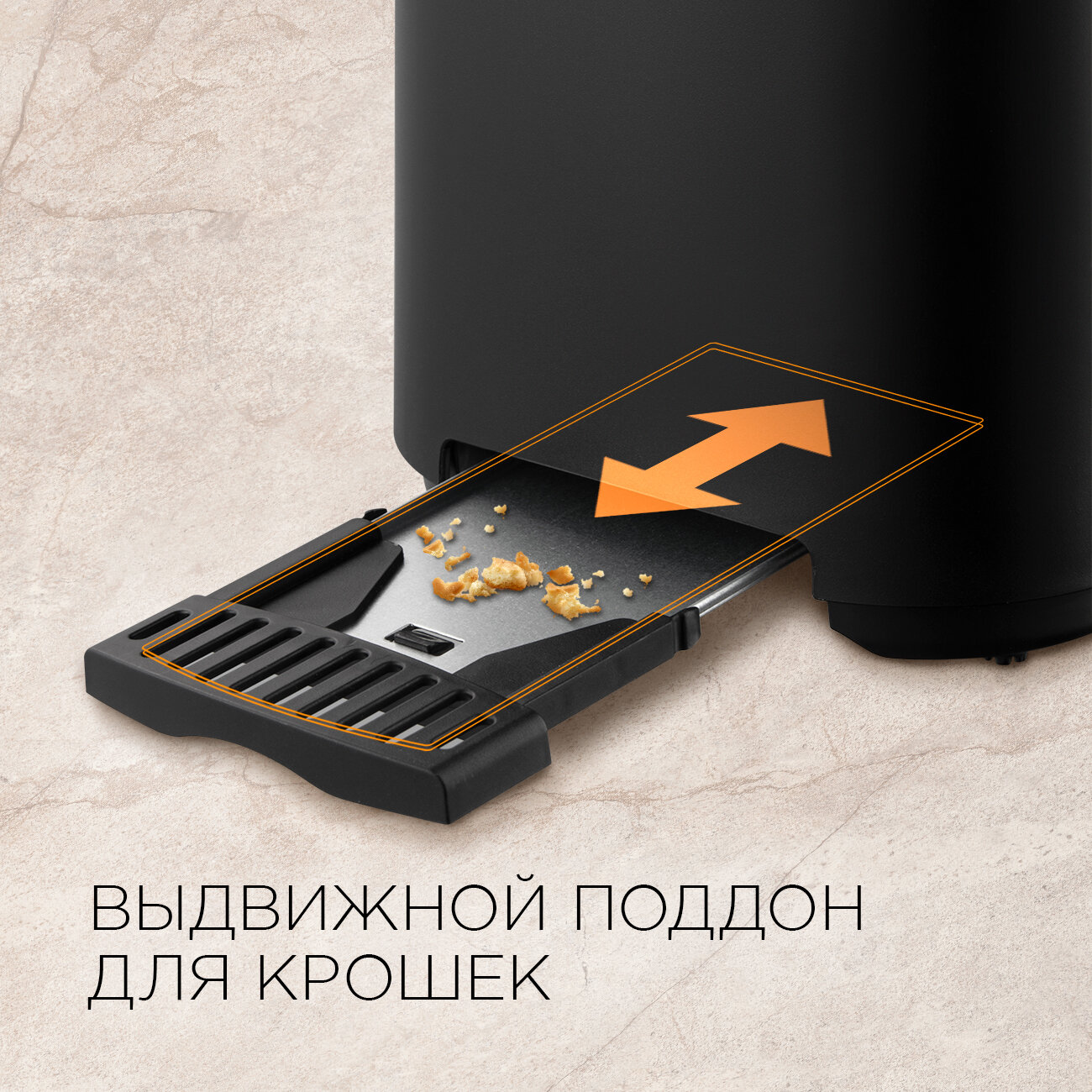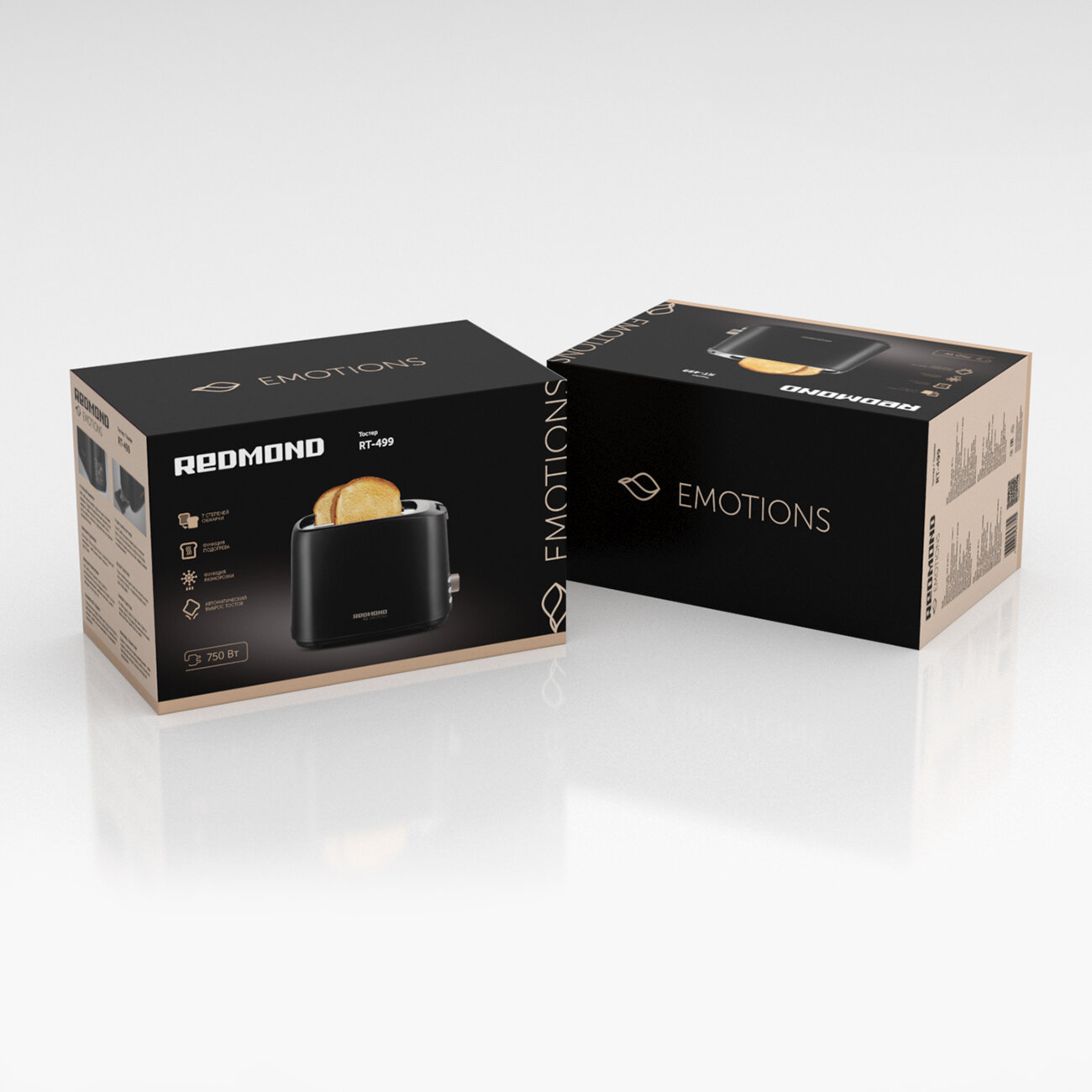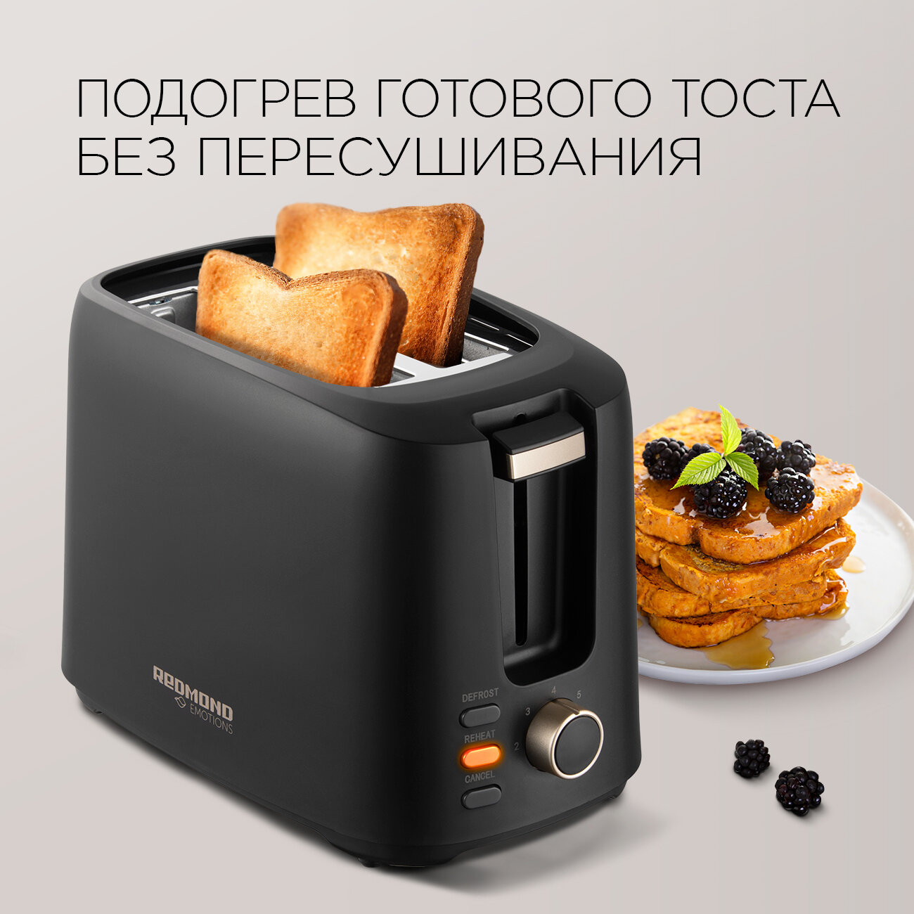 Тостер Redmond RT-499, 750 Вт, 7 режимов прожарки, 2 тоста, чёрно-бежевый
