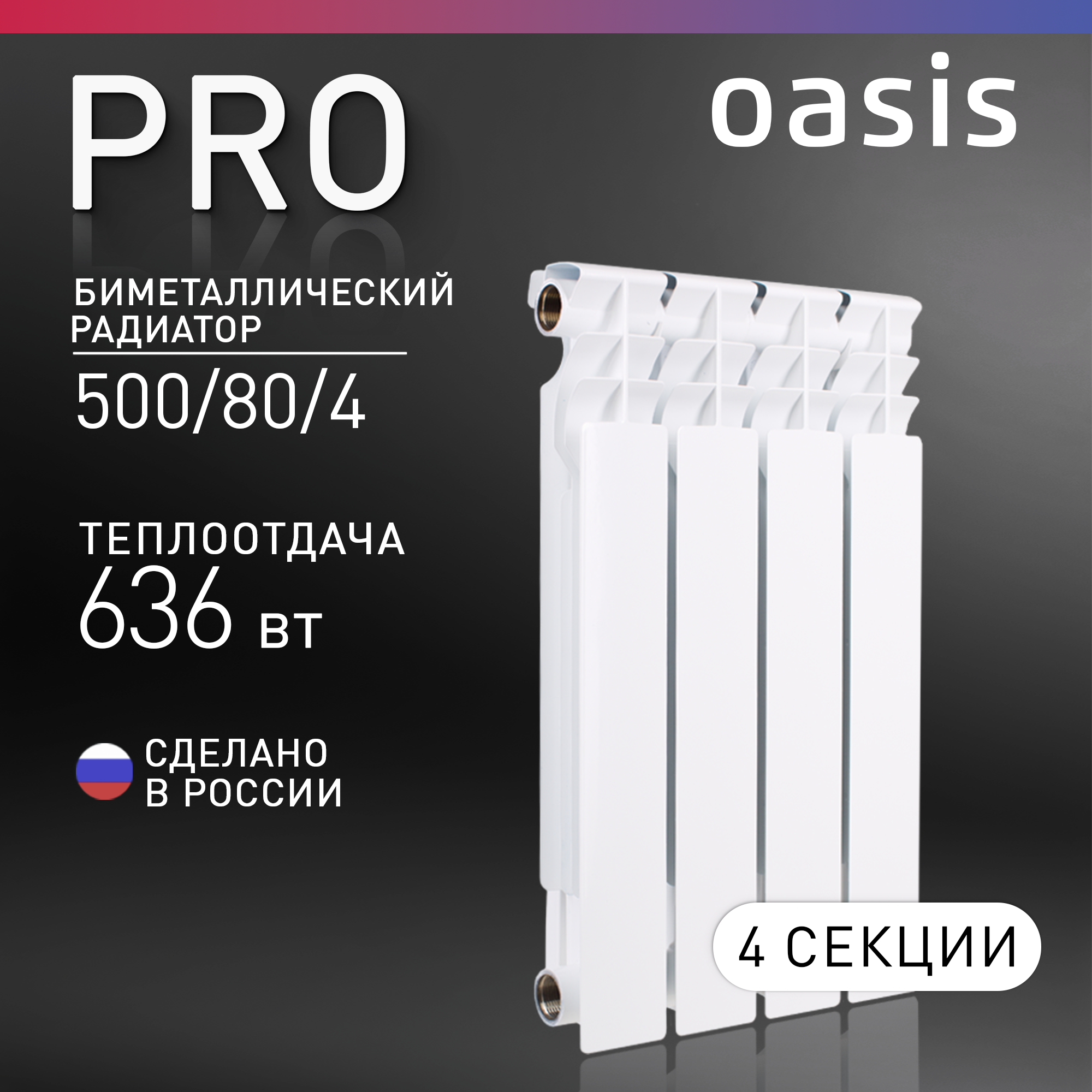 Радиатор биметаллический PRO 500х80 4 секции 636Вт Oasis 4640039484448