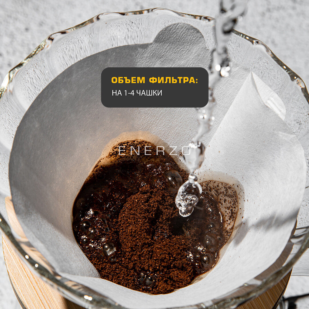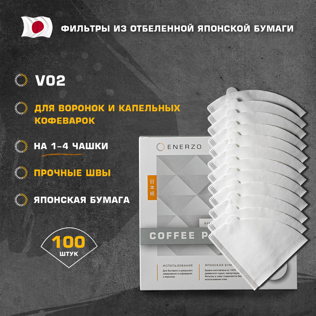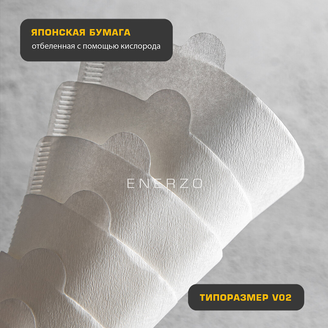 ENERZO / Фильтры для кофе бумажные из отбеленной японской бумаги V02 конической формы для воронок размера 02 (от 1 до 4 чашек) - 100 шт в коробке интересное:
