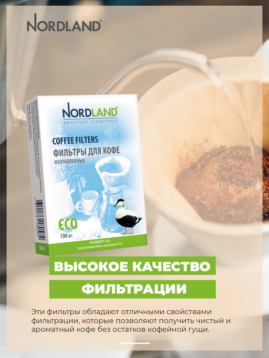 Фильтры для кофе неотбеленные NORDLAND размер 1х4 100 шт. в коробке интересное: