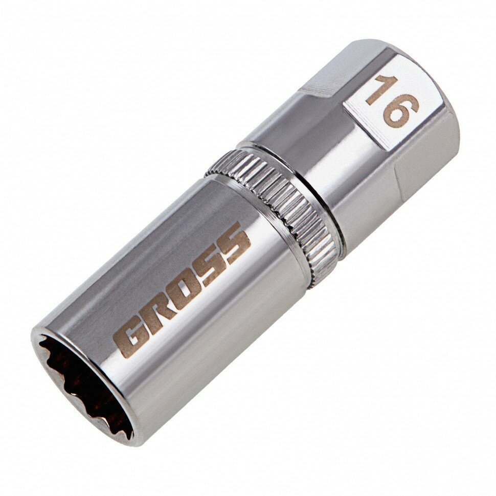 Gross Головка торцевая свечная, магнитная,12-гранная, 16 мм, под квадрат 1/2" // Gross 13188 .