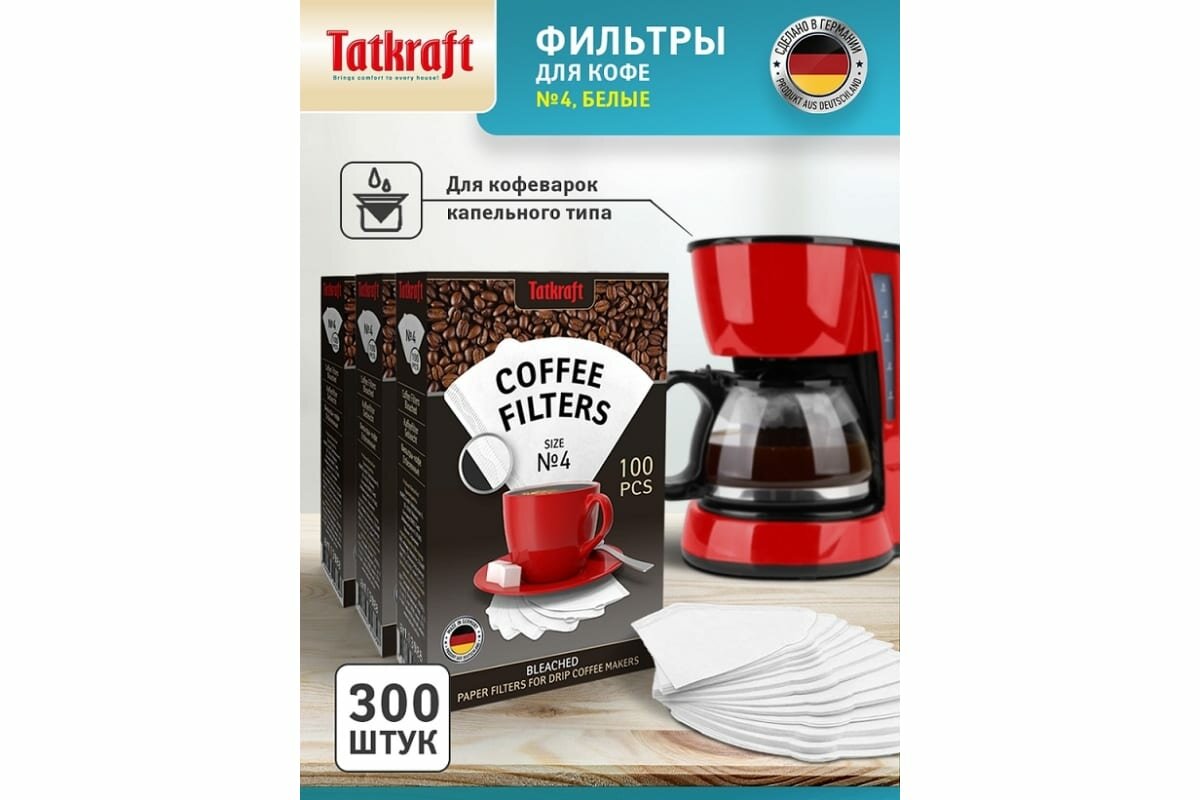 Фильтр для кофеварки TATKRAFT, бумажные, белые №4, одноразовые 300 шт интересное: