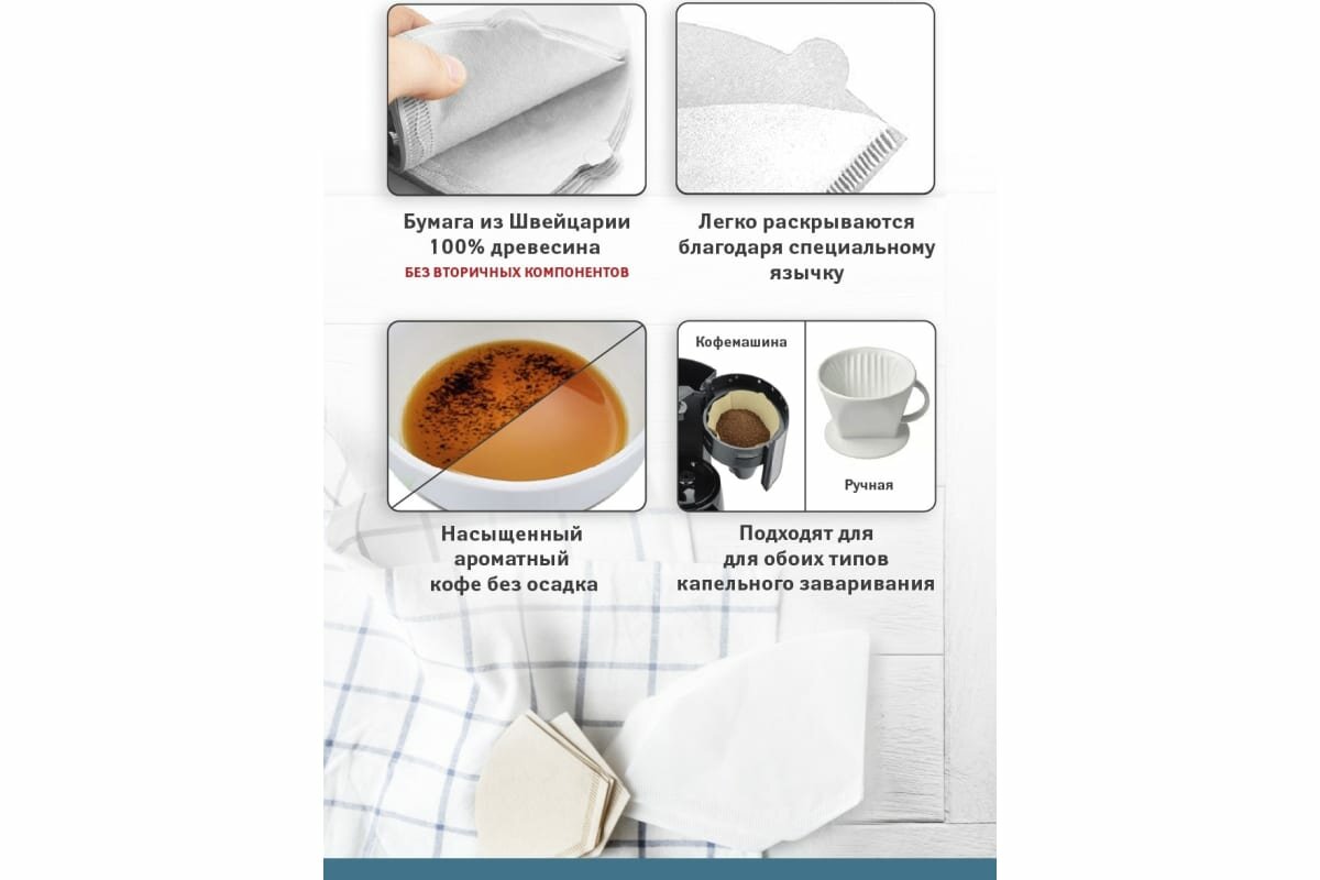 Фильтры для кофе бумажные отбеленные №4 одноразовые 100 шт, для капельных кофемашин