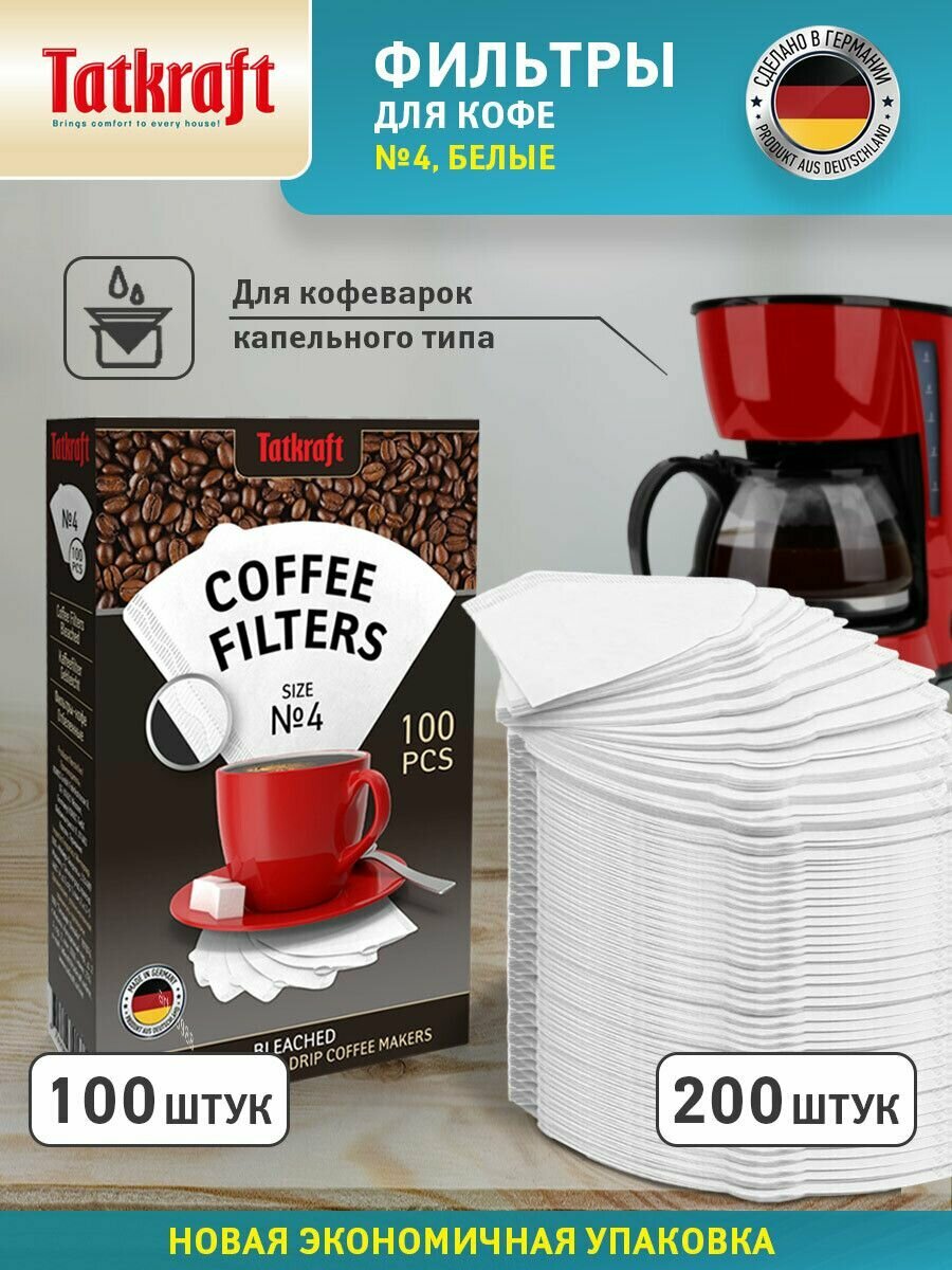Купить Фильтр для кофеварки TATKRAFT, бумажные, белые №4, одноразовые 300 шт