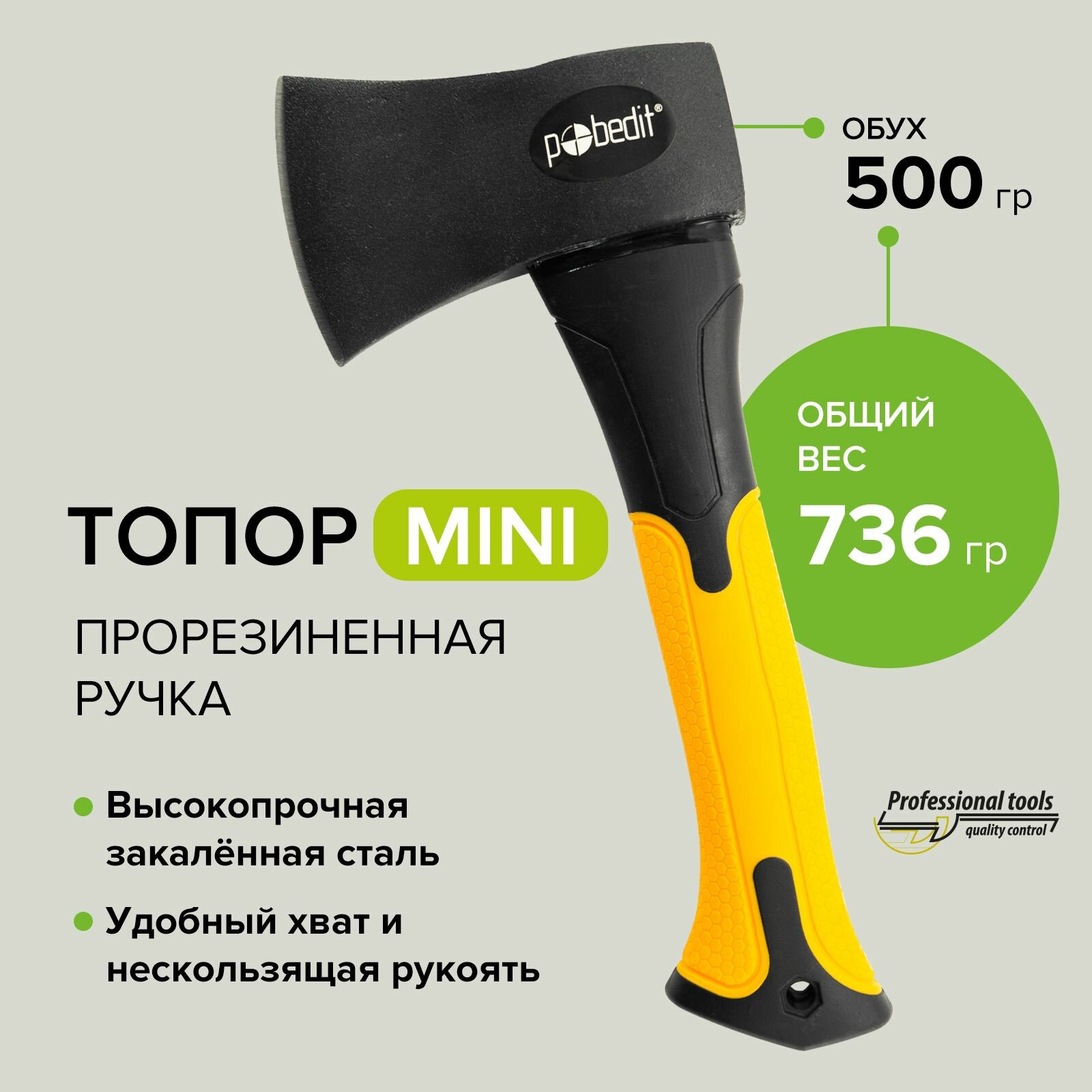 Топор MINI 500 гр обрезиненная рукоять 70% фибергласс Pobedit