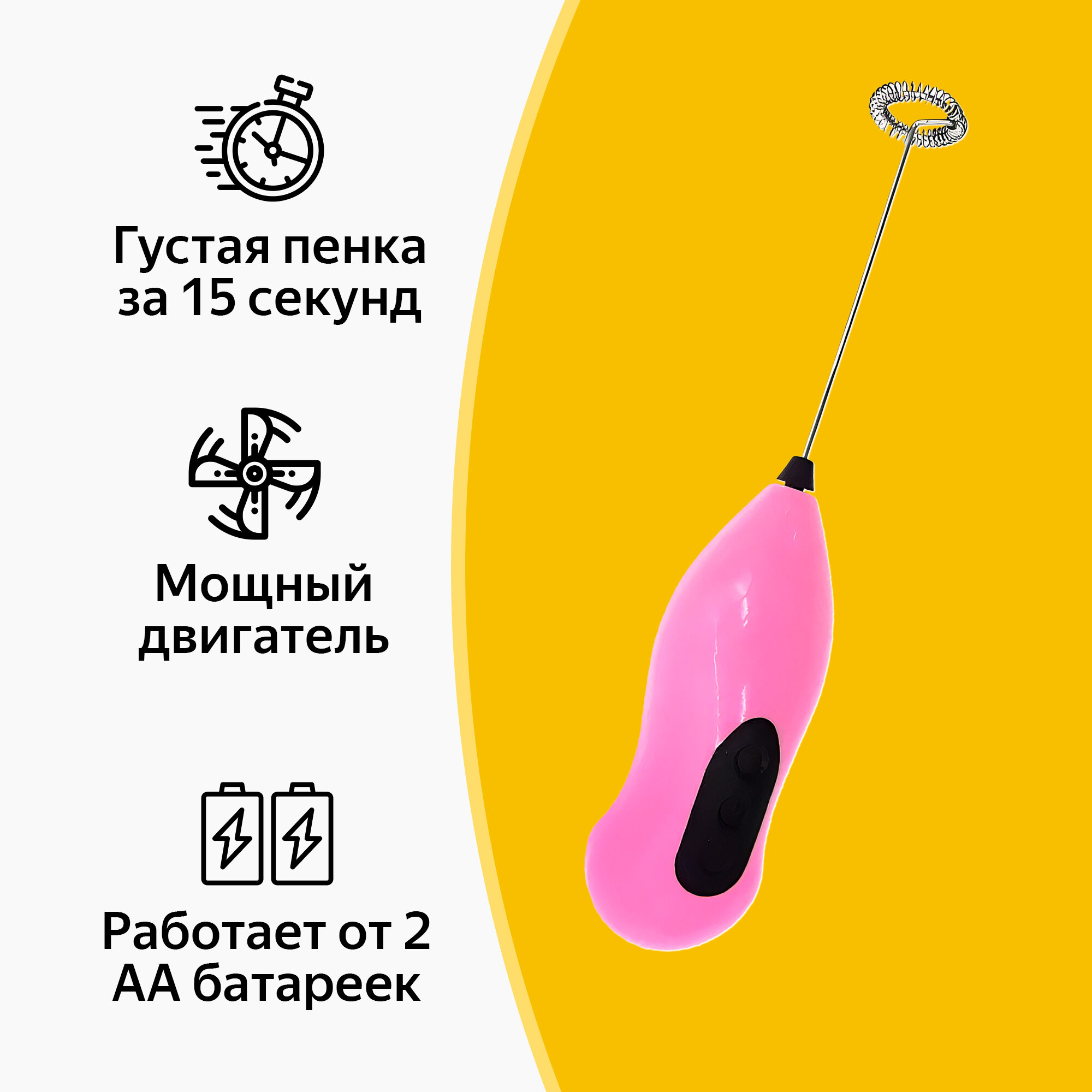 Купить Ручной капучинатор (вспениватель) для молока, капучино, чая матча, омлета и детской смеси, розовый