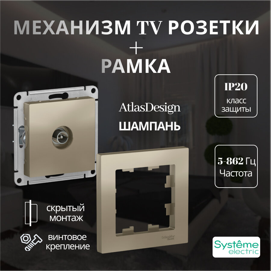 СохранитьSE AtlasDesign Шампань Розетка антенная одиночная TV коннектор, механизм интересное: