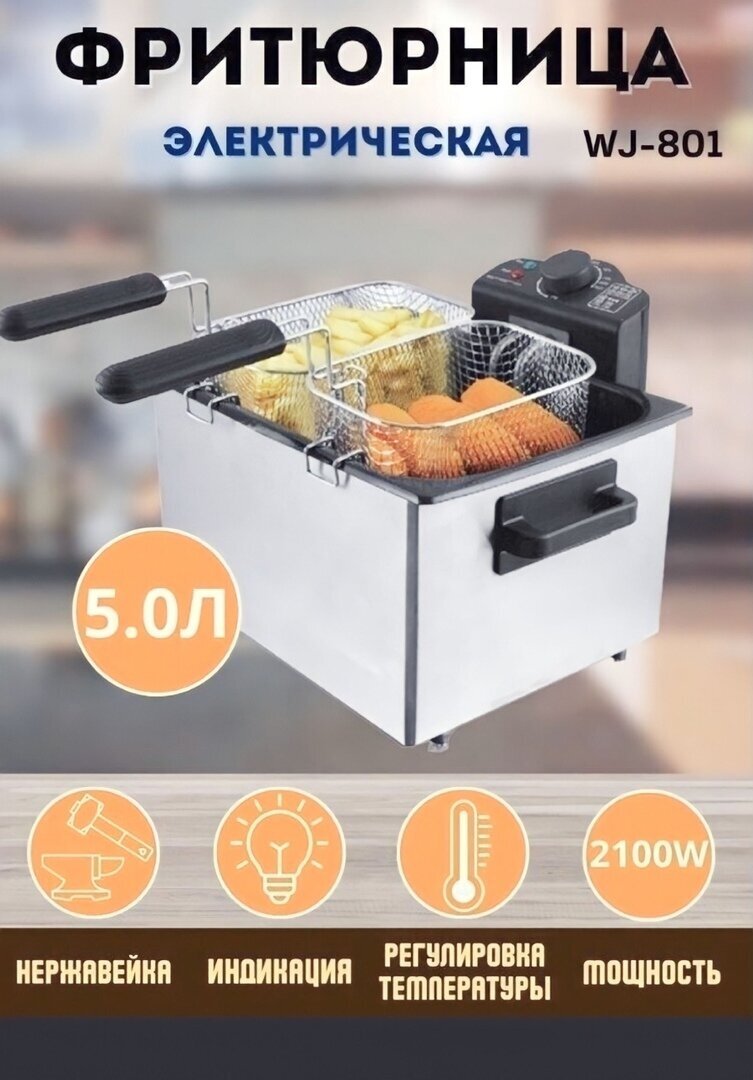 Электрическая фритюрница/EXCELLENT TASTE/съемная чаша/WJ-801/для кофе,ресторанов, дома/2100 Вт/объем 5 л интересное: