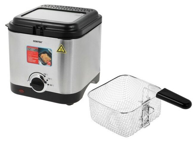 Купить Фритюрница Centek CT-1430, 900 Вт, 1.5 л , антипригарная чаша, серебристая