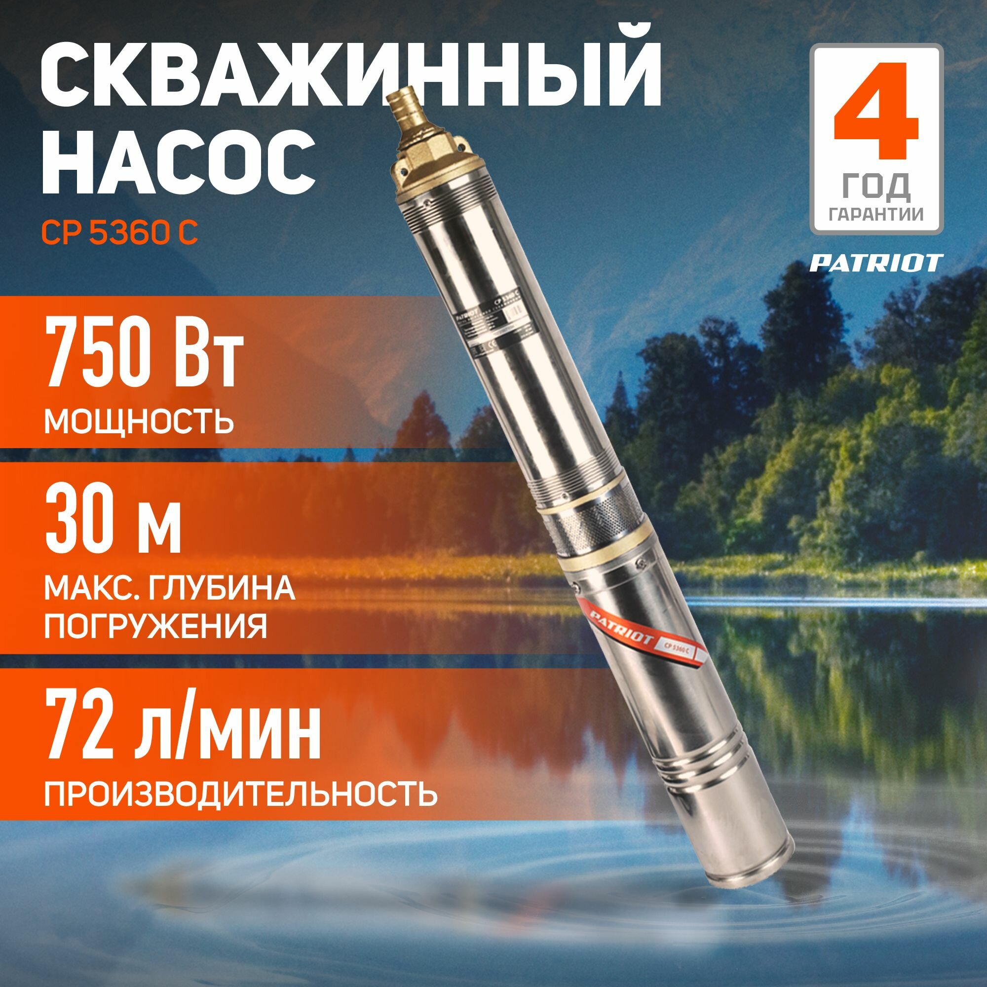 Скважинный насос глубинный для колодца центробежный PATRIOT CP 5360 C, 750Вт, 4320л. час