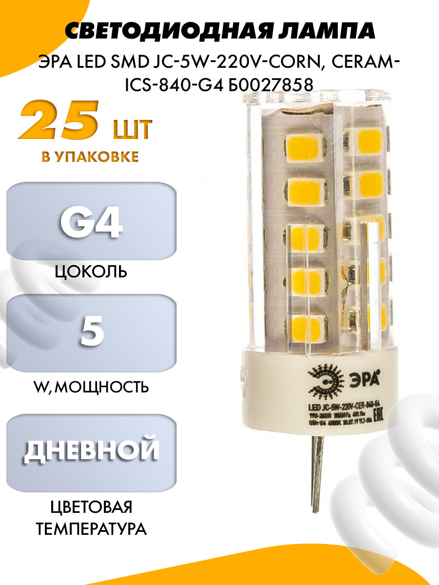 ЭРА LED JC-5W-220V-CER-840-G4 (диод, капсула, 5Вт, нейтр, G4)