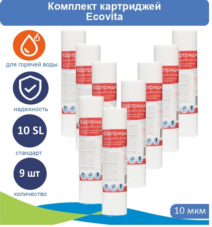Картридж полипропиленовый Ecovita PPH 5 10SL для горячей воды - 9 шт.