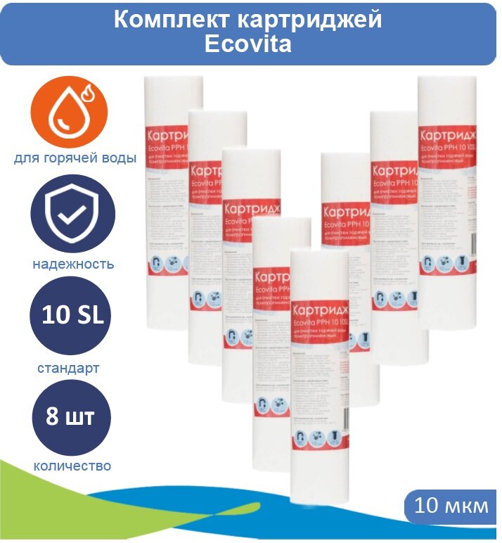 Картридж полипропиленовый Ecovita PPH 5 10SL для горячей воды - 8 шт.
